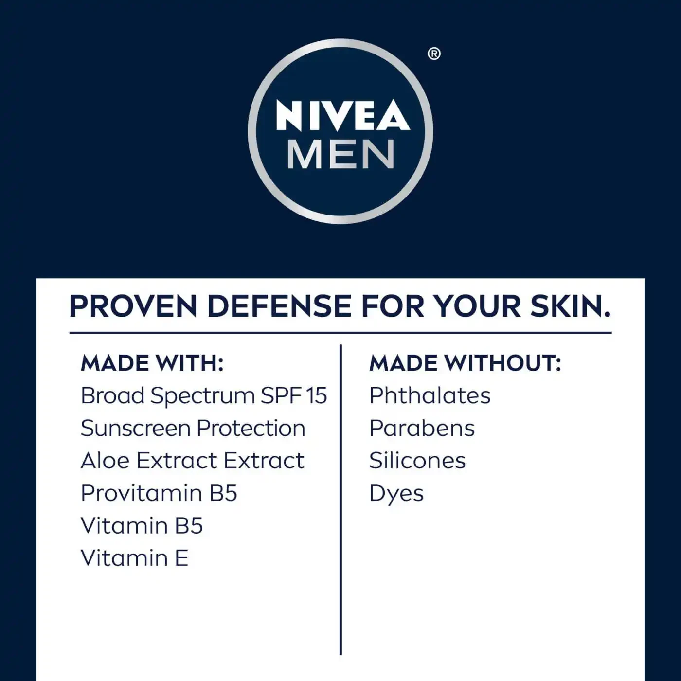 NIVEA MEN Maximum Hydration Face Lotion is designed to deeply hydrate your skin and protect it from the sun's harmful rays. With broad-spectrum SPF 15, it blocks 93% of the sun's rays, helping to prevent sunburns, signs of aging, and skin cancer.