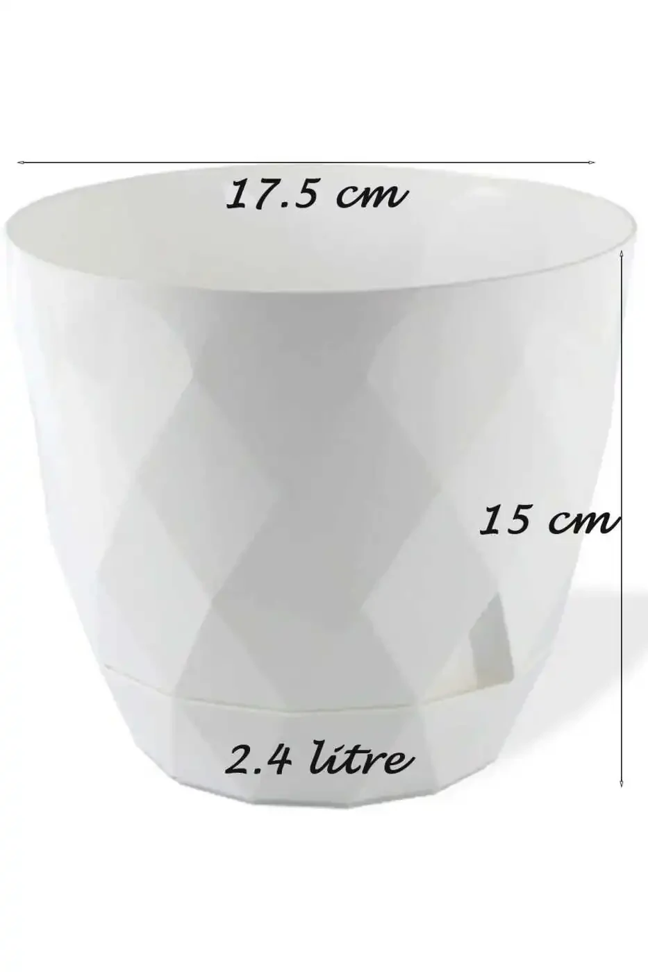 Представляем вам No3 4 штуки 2,4 литра Белые 17,5 см Горшки для цветов из пластика с рисунком пахлавы с самополивом, стильное и элегантное дополнение к вашему дому или саду! Эти горшки изготовлены из прочного и легкого пластика, что делает их идеальными для использования как внутри, так и снаружи. Элегантный рисунок пахлавы и белый цвет дополнят любой декор, демонстрируя ваши цветы и растения в самом красивом виде.