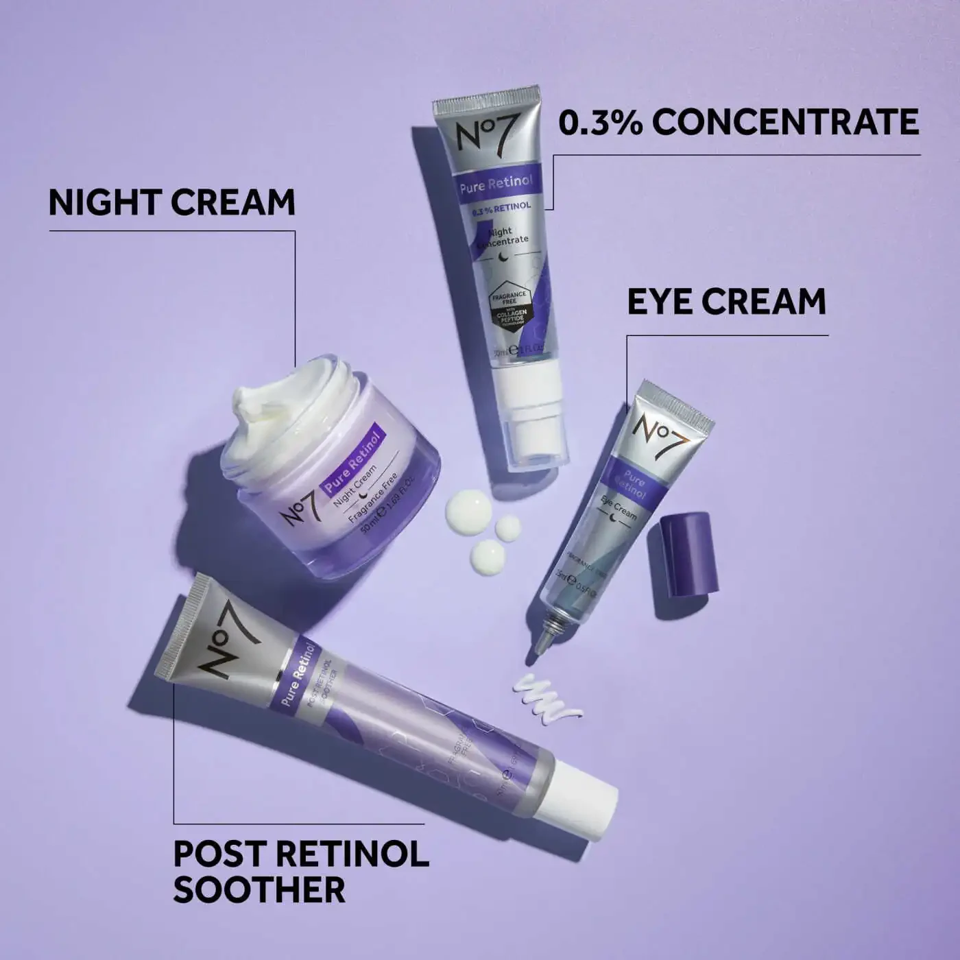 no7 retinol kremi, tungi tuzatuvchi krem, retinol, kollagen peptidlari, bisabolol