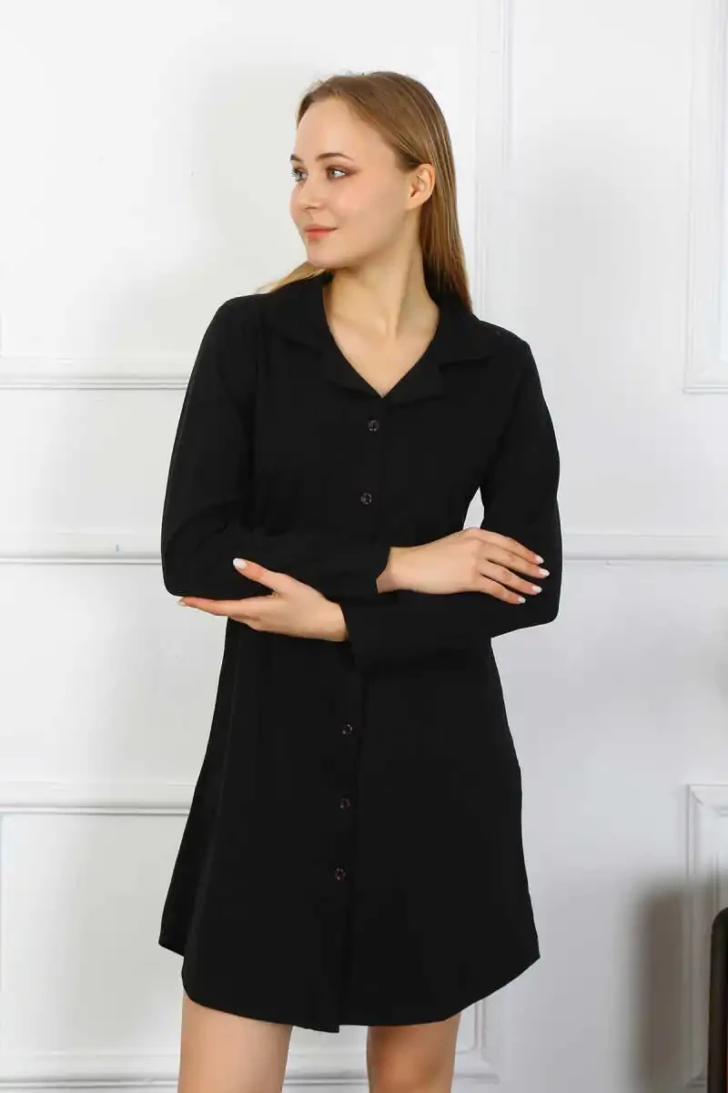 Поднимите свою одежду для сна на новый уровень с женской ночной сорочкой Akbeniz из хлопка с длинным рукавом, пуговицами и черного цвета. Закажите ее уже сегодня и испытайте непревзойденный комфорт и стиль!
