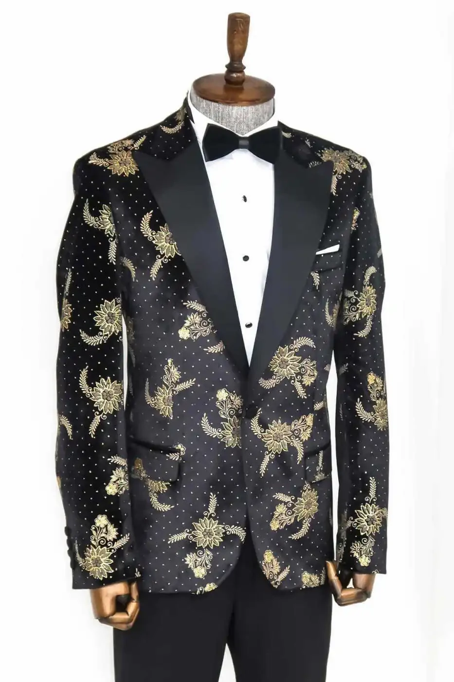 men's tuxedo jacket, velvet tuxedo, black tuxedo, dotted floral pattern, wessi, special occasions, wedding, formal event