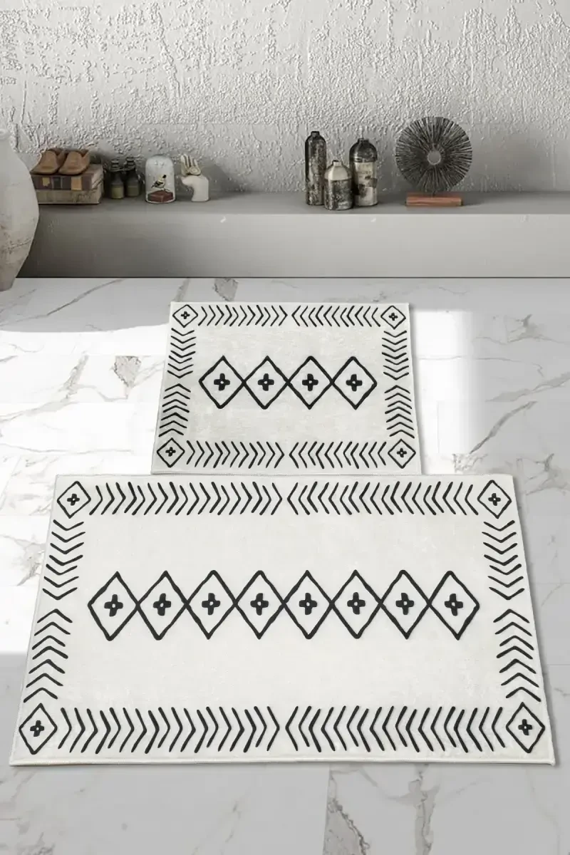 Meet the Non-Slip Washable 2-Piece Bathroom Rug Mat Toilet Set that offers elegance and safety together for your bathroom! This set, carefully designed by Thalia Home, will completely change the atmosphere of your bathroom. This set, which suits every style with the nobility of white and its modern design, stands out not only with its aesthetic appearance but also with its practical use. Thanks to its non-slip base feature, it provides a safe use experience by eliminating the risk of slipping on wet floors in the bathroom. This feature is vital, especially in homes with children and elderly individuals. It minimizes the risk of falling and injury, making your bathroom safer. Thanks to its medium pile height (6-12 mm), it leaves a soft and comfortable feeling under your feet. Starting the day with this soft touch instead of stepping on the cold floor in the morning will increase your motivation. At the same time, it keeps your feet warm after leaving the bathroom, reducing the risk of catching a cold. Thanks to its easy-to-clean structure, you can easily clean your bathroom rugs. By cleaning them according to the washing instructions, you can ensure long-lasting use. Thanks to its stain-resistant feature, you can easily clean dirt and stains that occur in daily use. It saves you time and gives you more freedom. The use of polyester material ensures that the product is long-lasting and durable. High-quality polyester material is resistant to wear and fading. It maintains its vivid and stylish appearance like the first day for many years. This set, which complements the aesthetics of your bathroom, offers you a long-term investment. This 2-piece set consists of rugs of different sizes: 60x100 cm and 50x60 cm. In this way, you can achieve a harmonious appearance by using rugs of suitable sizes for different areas of your bathroom. It is suitable for use in different areas such as in front of the toilet, in front of the sink or in front of the shower cabin. It beautifies every corner of your bathroom, creating a stylish and tidy look. This bathroom rug set, produced with Thalia Home quality, is an ideal choice for those looking for both elegance and functionality. Take your bathroom pleasure to the next level with this product that will add value to your bathroom and offer a safe and comfortable use experience. Order now and enjoy renovating your bathroom!