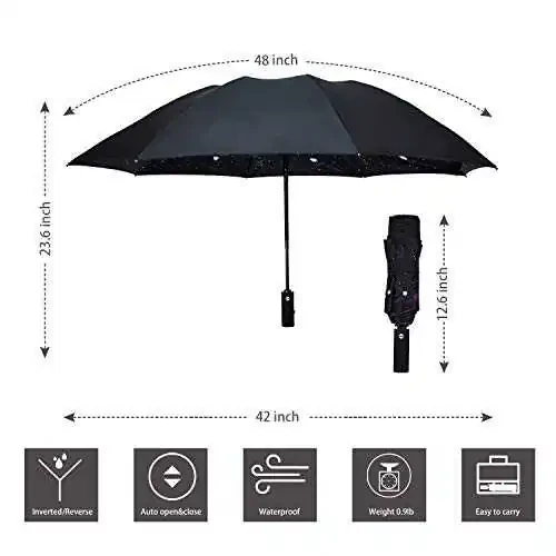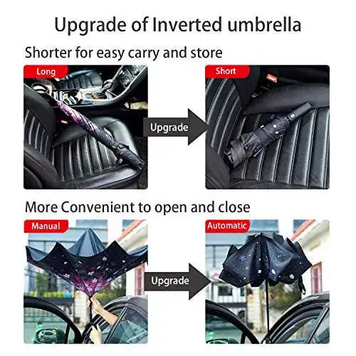 inverted umbrella, automatic umbrella, windproof umbrella, uv protection, rain umbrella, travel umbrella, compact umbrella, durable umbrella, noorny