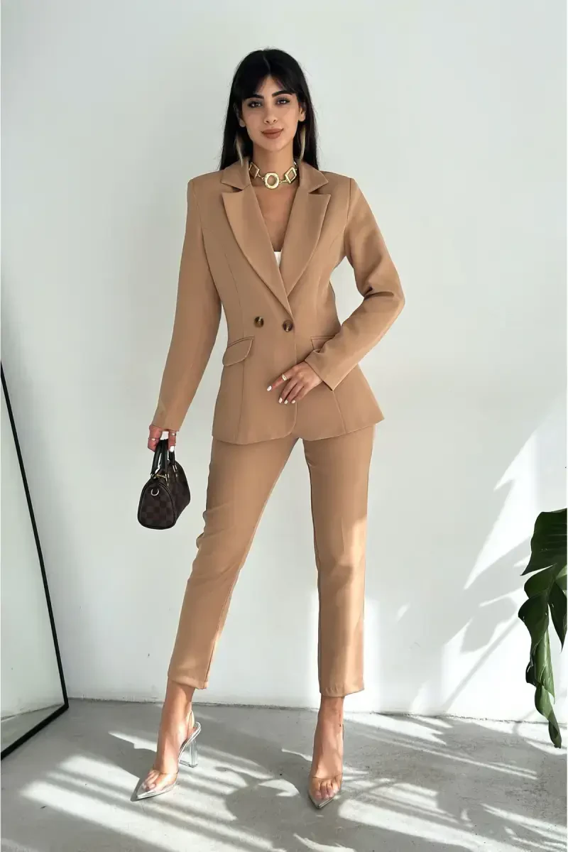 Подчеркните свой стиль в деловой жизни с помощью костюма Vizon Double Breasted Blazer Carrot брюки. Этот костюм, разработанный в теплом и изысканном оттенке коричневого, сочетает в себе элегантность и комфорт. Благодаря ткани из 90% хлопка, 8% полиэстера и 2% лайкры, он обеспечивает комфортное ношение в течение всего дня, а долговечность полиэстера гарантирует долгосрочные инвестиции. Двубортный блейзер костюма привлекает внимание своим современным кроем и стильными деталями, а брюки-морковки изящно сидят по фигуре, создавая удобный и стильный силуэт. Этот костюм является частью бизнес-коллекции и является вариантом, который вы можете с уверенностью выбрать для профессиональной среды. Деталь лацкана пиджака подчеркивает вашу официальность, а однотонный рисунок позволяет легко сочетать его с разными рубашками и аксессуарами. Длинный крой добавляет элегантности вашей осанке, а обычный крой позволяет вам свободно двигаться в течение всего дня. Узкий дизайн штанин помогает добиться современного и острого вида. На деловых встречах или на светских мероприятиях с костюмом Vizon Double Breasted Blazer Carrot вы всегда будете выглядеть стильно и ухоженно. Этот костюм станет незаменимой частью вашего гардероба и придаст вам уверенности в любой обстановке. Создайте разницу в своей деловой жизни с этим костюмом, который предлагает стиль и комфорт вместе. Этот костюм, который является идеальным выбором для тех, кто предпочитает как классический, так и современный стиль, можно носить в любое время года благодаря коричневому оттенку. Выберите Vizon Double Breasted Blazer Carrot Pants Suit, чтобы привнести новое дыхание в свой офисный стиль и добиться привлекательного внешнего вида. Вы можете надолго сохранить свой костюм как новый, ухаживая за ним в соответствии с инструкциями по стирке Type 1. Помните, что элегантность кроется в деталях, и этот костюм предлагает вам элегантность, которую вы ищете.