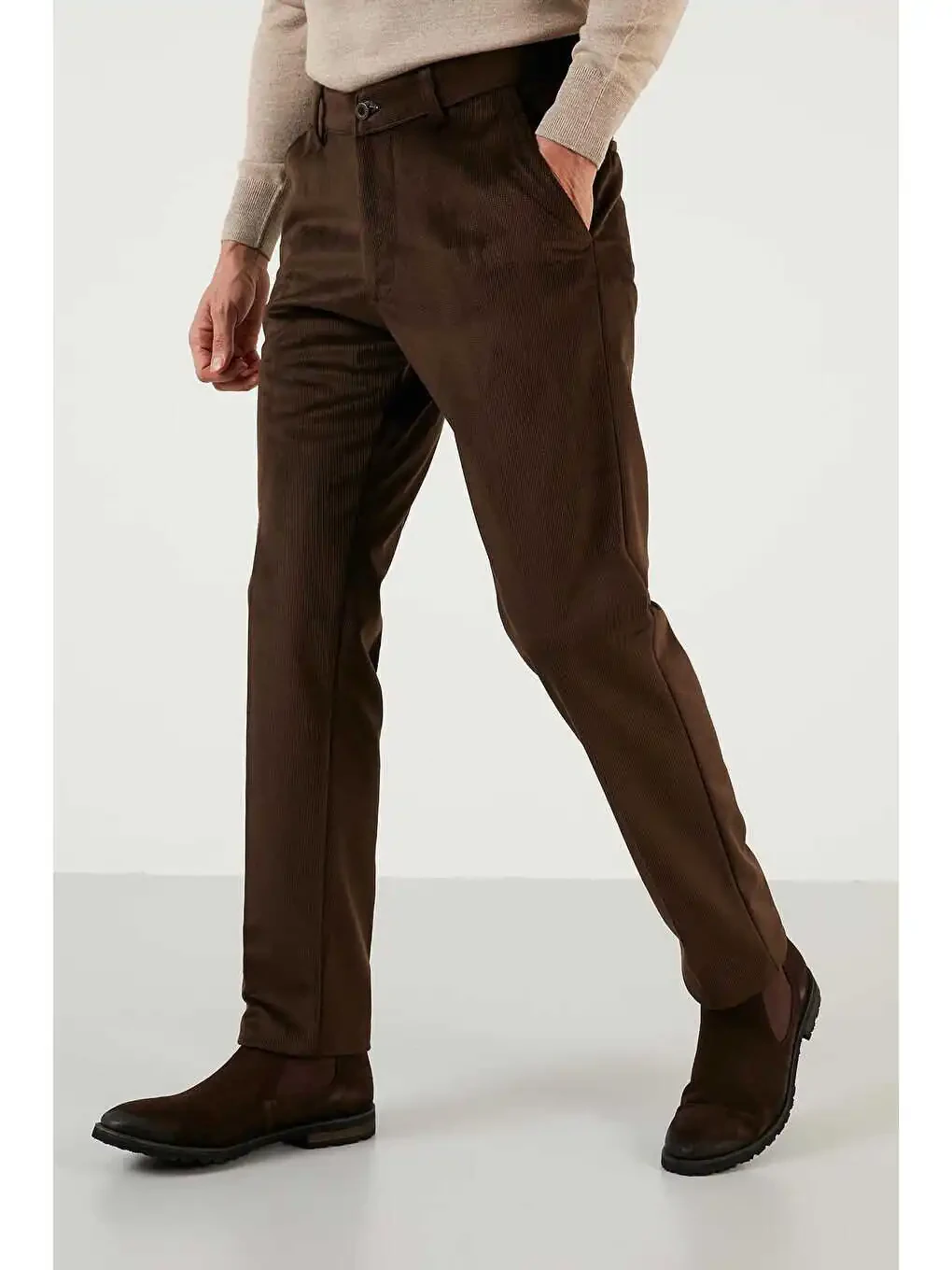 Buratti'nin sonbahar/kış koleksiyonuna ait Normal Bel Regular Fit Düz Paça Kadife Pantolon 645MERLIN ile şıklığı ve konforu bir arada yaşayın. Bu özel tasarım pantolon, modern erkeğin gardırobunda olması gereken temel parçalardan biridir. Yüksek kaliteli %67 poliamid ve %33 polyester karışımı sayesinde hem dayanıklı hem de yumuşak bir dokuya sahiptir. Kadife kumaşın kendine özgü dokusu, pantolona sofistike bir görünüm kazandırırken, regular fit kesimi gün boyu rahat bir kullanım sunar. Normal bel yüksekliği ve düz paça modeli, her türlü ayakkabı ve üst giyimle kolayca kombinlenebilir. İster günlük kullanımda ister özel bir etkinlikte, bu pantolon tarzınızı en iyi şekilde yansıtmanıza yardımcı olacaktır. Düğme ve fermuar kapama detayı, pantolonun güvenli ve rahat bir şekilde giyilmesini sağlar. Cepli tasarımı sayesinde pratik kullanım imkanı sunarken, Buratti kalitesiyle uzun ömürlü bir kullanım deneyimi vadediyor. Türkiye'de üretilen bu pantolon, üstün işçilik ve malzeme kalitesiyle öne çıkıyor. Bayram koleksiyonunun parçası olan bu kadife pantolon, özel günlerde de şıklığınızı tamamlayacak. Orta kalınlıkta kumaşı sayesinde hem serin havalarda hem de daha ılıman günlerde rahatlıkla tercih edilebilir. Markastok güvencesiyle sunulan bu Buratti pantolon, stil sahibi erkeklerin beğenisini kazanacak. Mankenin ölçüleri (Kilo: 86 kg / Boy: 1.89 cm. / Göğüs: 103 cm. / Bel: 86 cm. / Basen: 104 cm. / Beden: 44) göz önünde bulundurularak, bedeninizi doğru seçerek üzerinizde mükemmel duracaktır. Astarsız yapısıyla hafif ve konforlu bir kullanım sunar. Standart uzunluğu sayesinde çoğu boy uzunluğuna uyum sağlar. Kadife kumaşın eşsiz dokusu ve Buratti'nin özgün tasarımıyla bu pantolon, gardırobunuzun vazgeçilmez bir parçası olacak. Hem şık hem de rahat olmak isteyen erkekler için ideal bir seçimdir. Günlük kombinlerinizde spor bir görünüm elde etmek için sneaker'larla, özel davetlerde ise klasik ayakkabılarla kombinleyebilirsiniz. Buratti Normal Bel Regular Fit Düz Paça Kadife Pantolon ile her ortamda tarzınızı konuşturun. Bu pantolon, sadece bir giyim eşyası değil, aynı zamanda bir stil ifadesidir. Kendinizi özel hissetmek ve dikkatleri üzerinize çekmek için bu eşsiz parçayı gardırobunuza ekleyin.