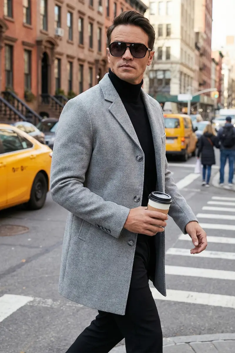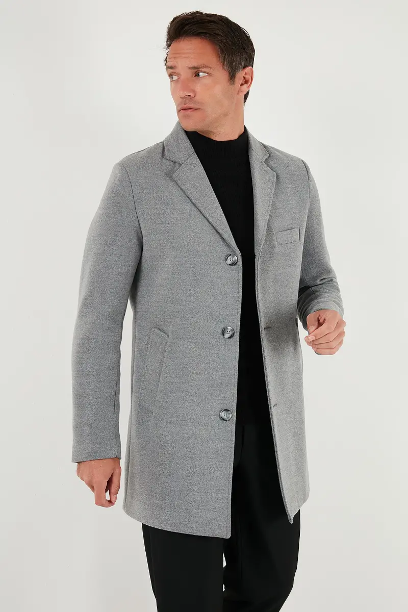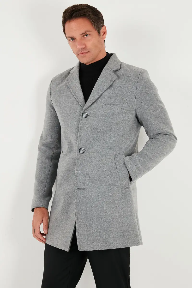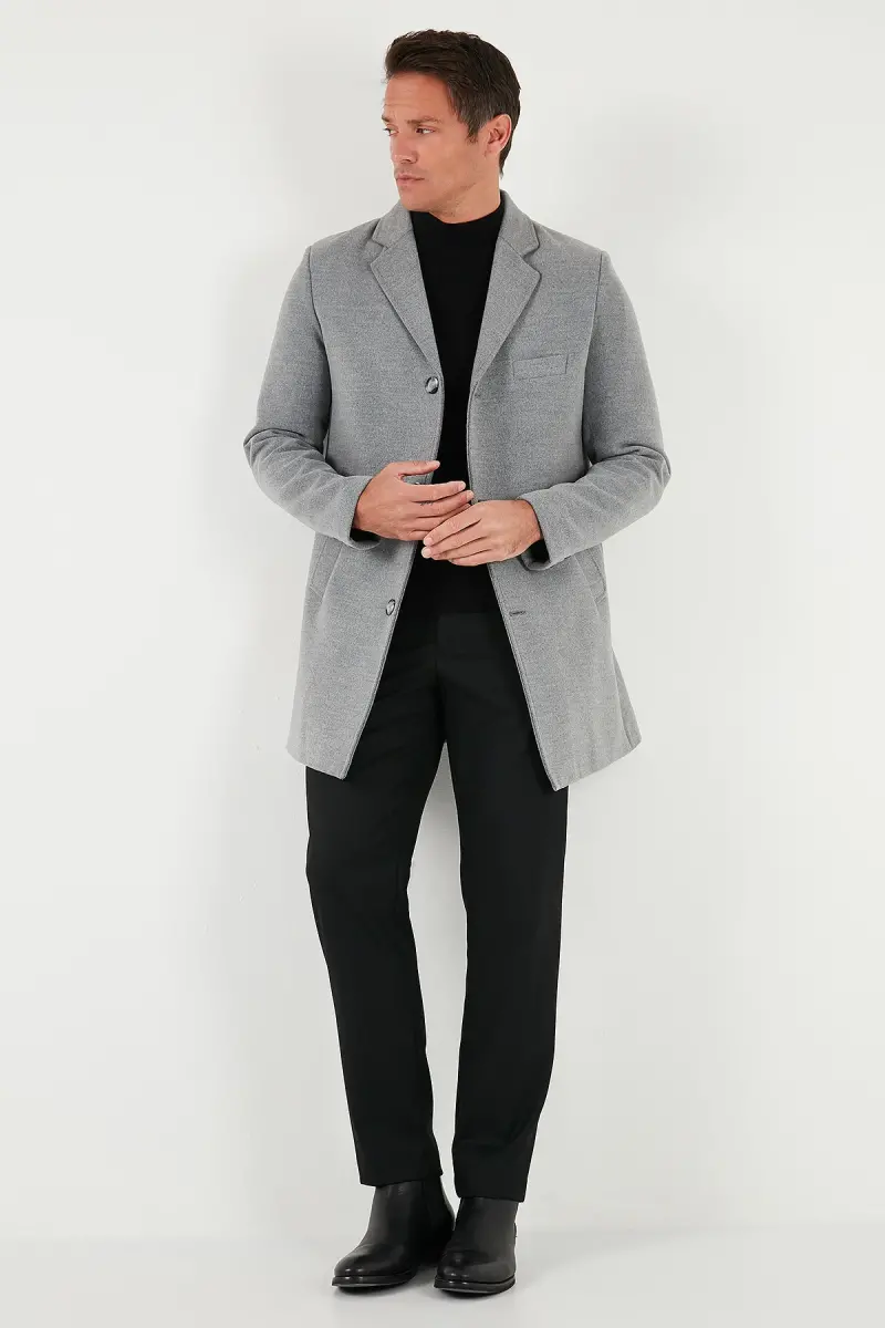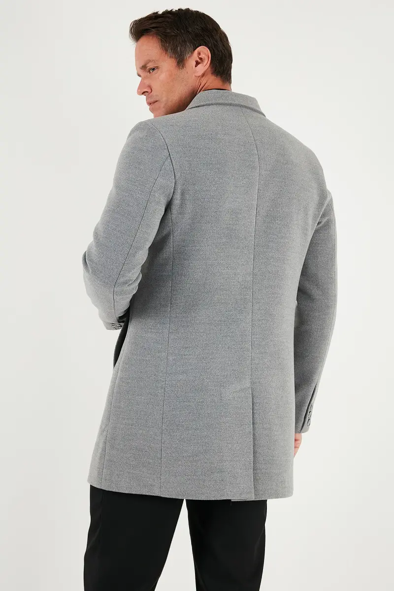 Normal Kalıp Tek Yırtmaçlı Düğmeli Mono Yaka Kaşe Kaban Erkek KABAN 5840098-GRİ