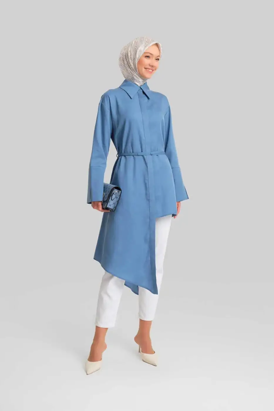 Armine tomonidan jo'natilishi mo'ljallangan ushbu nosimmetrik tunika o'zining o'ziga xos dizayni bilan sizning uslubingizga jozibali qo'shimcha olib qo'shiladi. Indigo rangining chuqur soyasi sizning kiyimingizga abadiy oqlanganlikni beradi, nosimmetrik qirqish esa harakatchan va zamonaviy ko'rinish yaratadi.