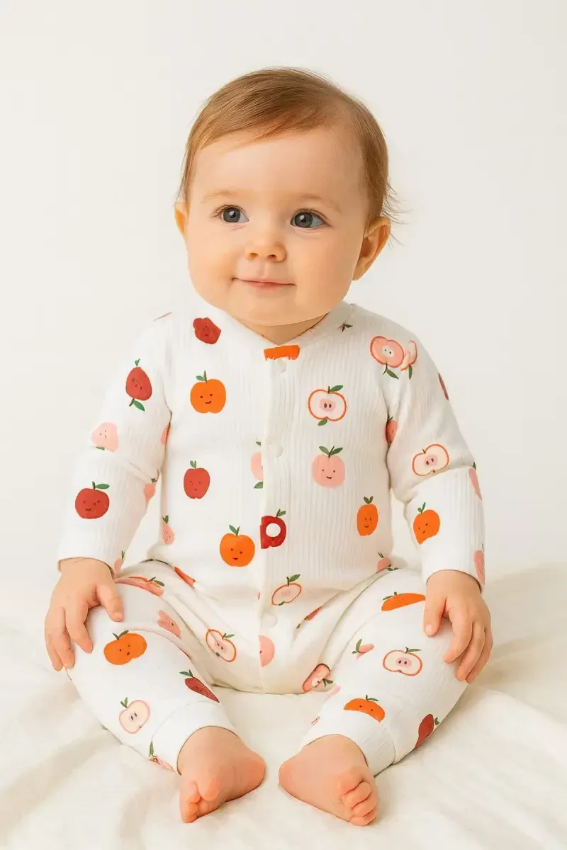 Комфорт и надежность одежды, которую ваш ребенок будет носить в первые месяцы, имеют большое значение для его спокойного сна и счастливого дня. Именно здесь в игру вступает комбинезон для новорожденных с принтом яблока из рубчатой ткани с кнопками. Этот комбинезон изготовлен из 100% хлопка и не содержит вредных веществ, которые могут повредить нежную кожу вашего ребенка. Благодаря своей естественной структуре хлопок обладает высокой воздухопроницаемостью, что помогает сохранить кожу вашего ребенка сухой и здоровой, предотвращая потоотделение. Рубчатая ткань мягко касается кожи вашего ребенка своей мягкой текстурой, а ее эластичная структура не ограничивает свободу движений. Это позволяет вашему ребенку свободно пинаться и ползать. Дизайн унисекс делает этот комбинезон идеальным вариантом как для девочек, так и для мальчиков. Милые яблочные принты, разбросанные по белому фону, добавляют милый штрих к одежде вашего ребенка. Эти игривые рисунки привнесут радость и живость в гардероб вашего ребенка. Дизайн комбинезона с кнопками облегчает смену подгузников и обеспечивает практичное использование. Кнопки специально разработаны таким образом, чтобы не повредить кожу вашего ребенка, и надежно закрываются. Этот комбинезон, подходящий для младенцев в возрасте 1-3-6 месяцев, разработан таким образом, чтобы адаптироваться к этапам роста вашего ребенка. Этот комбинезон не только стильный и милый, но и чрезвычайно практичный. Благодаря легко стирающемуся и гладящемуся свойству вы всегда можете содержать одежду своего ребенка в чистоте и порядке. Этот комбинезон, который вы можете использовать в течение длительного времени благодаря своей прочной структуре, станет одним из любимых предметов одежды вашего ребенка в первые месяцы. Комбинезон для новорожденных с принтом яблока из рубчатой ткани с кнопками - это стильный и практичный вариант, который ставит во главу угла комфорт и здоровье вашего ребенка. Добавив этот милый комбинезон в гардероб вашего ребенка, вы можете обеспечить ему комфортное и счастливое начало. Этот комбинезон бережно относится к коже вашего ребенка и в то же время облегчает жизнь матерям благодаря своей практичности. Кроме того, он добавляет элегантности вашему ребенку своими яблочными принтами. Короче говоря, комбинезон для новорожденных с принтом яблока из рубчатой ткани с кнопками станет отличным выбором как для вашего ребенка, так и для вас.