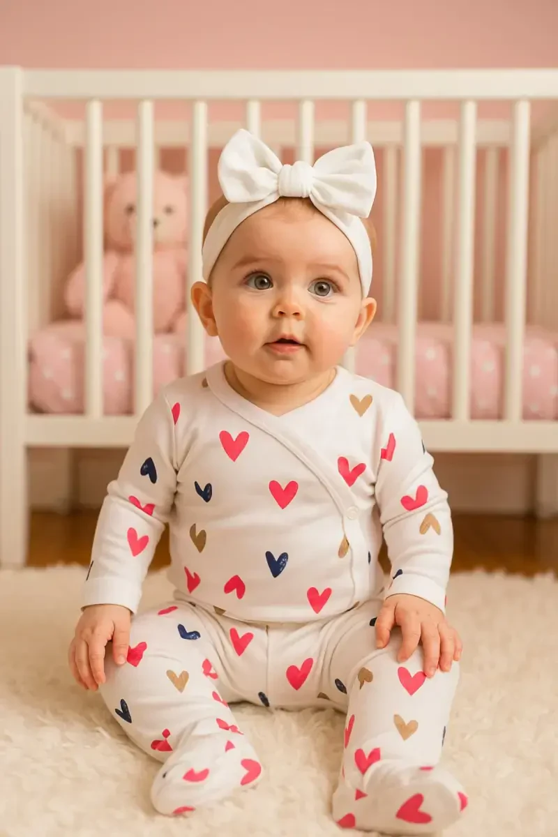 Самое естественное и здоровое начало для вашего новорожденного ребенка! Этот комплект из 2 предметов, изготовленный из органического хлопка, нежно касается нежной кожи вашего малыша. Этот комплект, изготовленный из необработанных химическими веществами, полностью натуральных хлопковых волокон, не раздражает нежную кожу вашего ребенка, сводит к минимуму риск аллергии и обеспечивает комфортное ношение в течение всего дня. Этот специальный дизайн предлагает неподвластную времени элегантность, которую вы можете с комфортом выбрать, если у вас есть как девочка, так и мальчик. Комплект состоит из кофты с длинными рукавами и удобных штанов. Наличие застежек-кнопок на плече верхней части облегчает процессы одевания и раздевания, ставя во главу угла комфорт как для вас, так и для вашего ребенка. Мягкий эластичный пояс брюк обеспечивает удобную посадку, не ограничивая свободу движений вашего ребенка. Этот комплект из органического хлопка, который вы можете смело использовать с первых дней жизни вашего ребенка, является идеальным выбором как для повседневного использования, так и для особых моментов. Этот комплект, привлекательный по цвету и дизайну, станет незаменимой вещью в гардеробе вашего ребенка. Кроме того, благодаря дышащей структуре органического хлопка кожа вашего ребенка всегда остается сухой и свежей. Этот продукт, тщательно разработанный для здоровья и комфорта вашего ребенка, также является экологически чистым выбором. Производство органического хлопка способствует сохранению водных ресурсов и повышению плодородия почвы. Поэтому комплект из 2 предметов из органического хлопка для новорожденных - хороший выбор как для вашего ребенка, так и для нашей планеты. Не упустите этот комплект из органического хлопка, созданный с любовью, который будет сопровождать вашего ребенка в процессе роста. Помните, ваш ребенок заслуживает самого лучшего для своей кожи!
