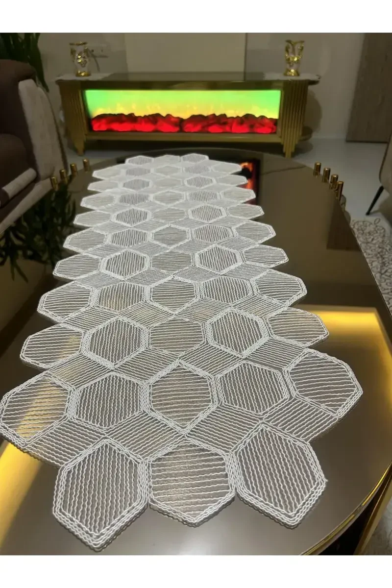 Люкс Runner Seti | Beyaz Fransız Güpürlü Örtü Takımı | FERDOSİ TEKSTİL