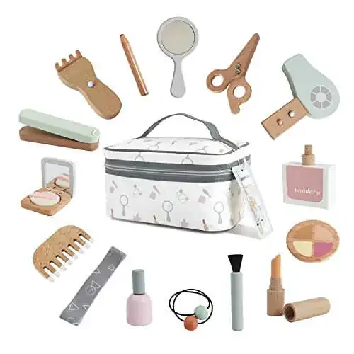 Набор деревянных игрушечных косметических средств NunuKids - Игрушки для салона красоты из дерева - Набор деревянных косметических средств для девочек 16 шт.