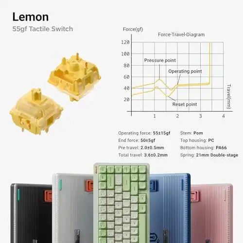 One of the standout features of the Halo75 V2 is its hot swappable switch capability. Experiment with different switch types whenever you want and create your own personalized keyboard. The Blue and Lemon (55gf) switches offer both rapid typing performance and satisfying clicky feedback.