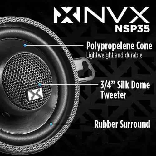 NVX NSP35 dinamiklari avtomobil audio tizimingizni yangilash uchun mo‘ljallangan. Yuqori sifatli materiallar va ilg‘or muhandislik bilan ishlab chiqarilgan ushbu dinamiklar ajoyib ovoz sifati, chidamlilik va oson o‘rnatishni birlashtiradi. Ular har qanday avtomobil va yuk mashinasida foydalanish uchun mo‘ljallangan. O‘rnatilgan X-Overs bilan jihozlangan. Uzoq muddatli foydalanish uchun chidamli materiallardan tayyorlangan.
