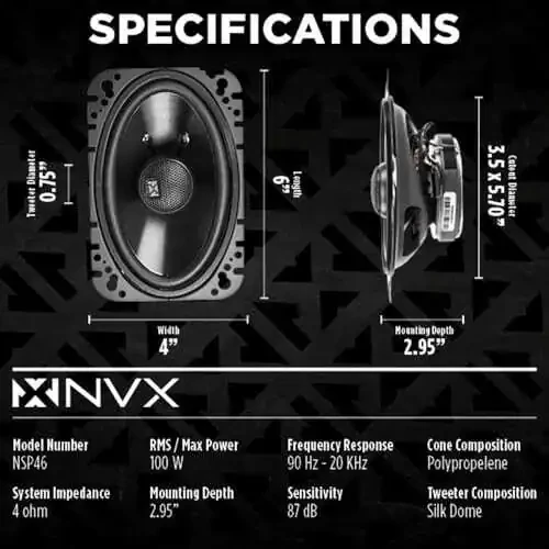 NVX® NSP46 4x6" динамиклари автомобилингизнинг товуш тизимини яхшилаш учун ажойиб танловдир. Юқори сифатли материаллардан тайёрланган бўлиб, узоқ муддатли фойдаланиш учун мўлжалланган. Оддий ўрнатиш хусусияти ва юқори самарадорлиги билан мукаммал товуш тажрибасини таъминлайди. Маҳсулот техник хусусиятлари ва ўрнатиш тафсилотларини ўз ичига олган батафсил фойдаланиш бўйича қўлланма мавжуд. Ҳар қандай савол ёки муаммо учун мижозлар хизмати билан боғланишингиз мумкин. Маҳсулот харид қилинган кундан бошлаб ишлаб чиқарувчи кафолатига эга. Илтимос, харид қилишдан олдин автомобилингизнинг динамик ўлчамларининг мослигини текширинг. Хавфсиз ва муаммосиз харид тажрибаси учун асл NVX® маҳсулотларини танланг. Тақлид маҳсулотлардан сақланинг. Бу юқори самарадорликка эга динамиклар кўп йиллар давомида завқ билан фойдаланишингиз мумкин бўлган товуш тажрибасини таъминлаш учун мўлжалланган. Мукаммал товуш сифати ва узоқ муддатли самарадорликни ҳис қилинг.