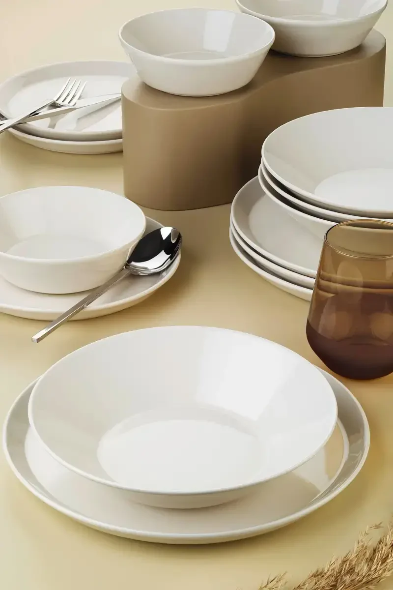 Этот обеденный сервиз с цветом мелкий белый подходит к любой сервировке стола и имеет современный и минималистичный дизайн. Изготовленный из прочного фарфора, набор можно мыть в посудомоечной машине и использовать в микроволновой печи.