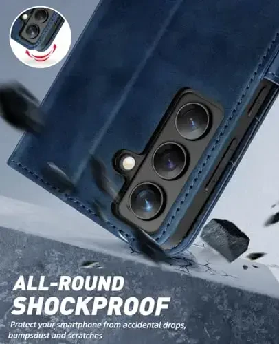 OCASE Совместимый с Galaxy S24 5G Чехол-кошелек - отличный выбор, сочетающий в себе стиль и удобство. Этот чехол, изготовленный из высококачественной искусственной кожи и ударопрочной внутренней оболочки из ТПУ, защищает ваш телефон от износа при ежедневном использовании, предлагая при этом элегантный внешний вид. С помощью варианта цвета Spliced Blue (Синий) вы можете добавить своему телефону уникальный стиль. Этот многофункциональный чехол призван облегчить вашу жизнь, а не просто быть защитным чехлом. Благодаря трем слотам для карт вы можете носить с собой кредитные карты, удостоверение личности или карты для проезда в общественном транспорте. Он также предлагает широкое отделение для наличных денег или заметок. Функция магнитного закрытия обеспечивает надежное закрытие чехла и помогает сохранить ваши вещи в безопасности. Чехол-кошелек OCASE Galaxy S24 5G - идеальное решение для путешественников. Благодаря технологии блокировки RFID (радиочастотная идентификация) информация с ваших карт защищена от несанкционированного доступа. Эта функция обеспечивает душевное спокойствие, особенно при путешествии в людных местах или в общественном транспорте. Чехол также можно использовать в качестве подставки. Вы можете зафиксировать свой телефон в горизонтальном положении и освободить руки при просмотре видео или видеозвонков. Эта функция особенно удобна в длительных поездках или во время ожидания. OCASE придает большое значение удовлетворенности клиентов. Поэтому на свою продукцию они дают пожизненную гарантию. Если у вас возникнут какие-либо проблемы, вы можете связаться с нами напрямую через систему Modazonemessage. Мы будем рады помочь вам в кратчайшие сроки. Однако повреждения, вызванные человеческим фактором, и повторные замены продукта не покрываются гарантией. Если вы ищете защиту и стиль для своего телефона Galaxy S24 5G, чехол-кошелек OCASE Compatible with Galaxy S24 5G идеально вам подойдет. Этот чехол предлагает ряд функций, которые помогут вам обезопасить свой телефон и облегчить повседневную жизнь.