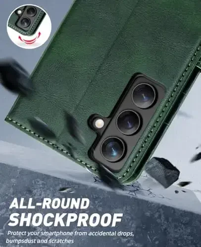 Galaxy S24 чехол-бумажник, чехол из искусственной кожи, RFID-защита, чехол с отделением для карт, чехол с подставкой, амортизирующий чехол, чехол Blackish Green, защита телефона, чехол-бумажник, аксессуар для Galaxy S24