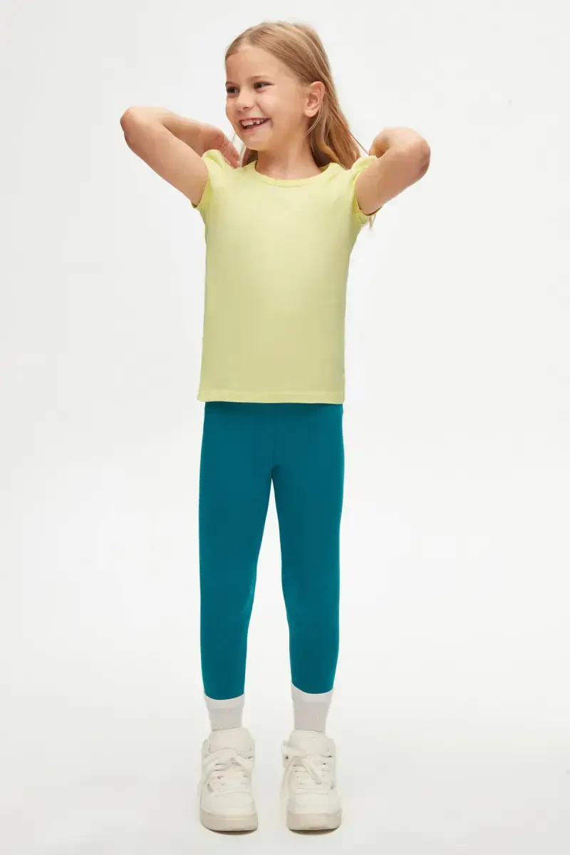 qiz bola futbolkasi, och sariq futbolka, asosiy futbolka, tarvuz yengli futbolka, nol yoqali futbolka, paxta futbolka, bolalar kiyimi, yozgi futbolka, qulay futbolka, qizlar uchun moda