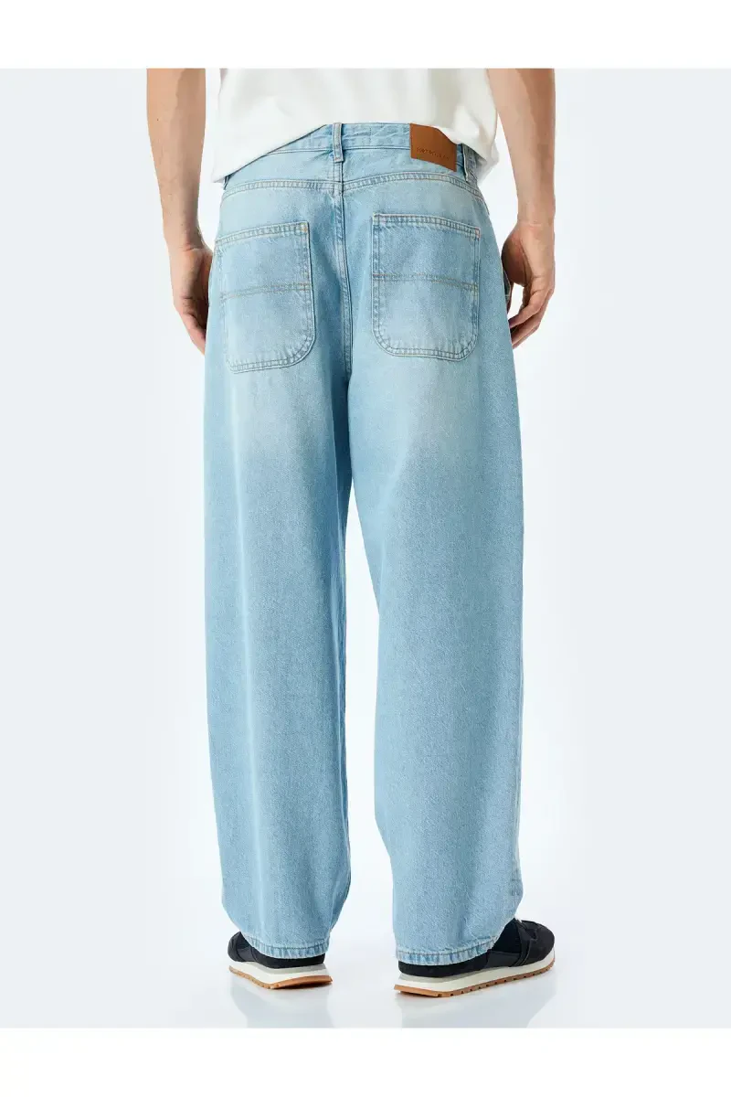 Qulay kesimli paxtali jinsi - Kundalik uslub, cho'ntak detallari bilan va qulay