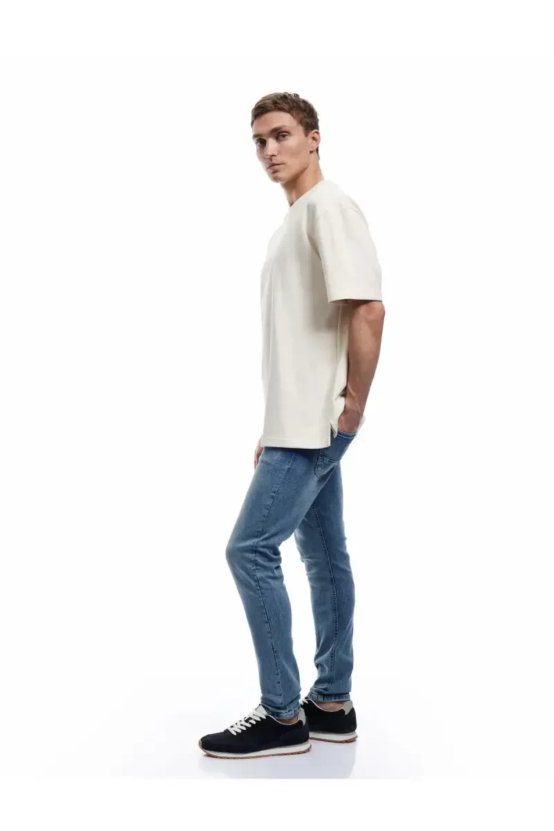 Oddiy belli oddiy ko'k rangli erkaklar uchun denim shimi M4RAS2D58M3R8TE_SLIM TAPERED - ECO