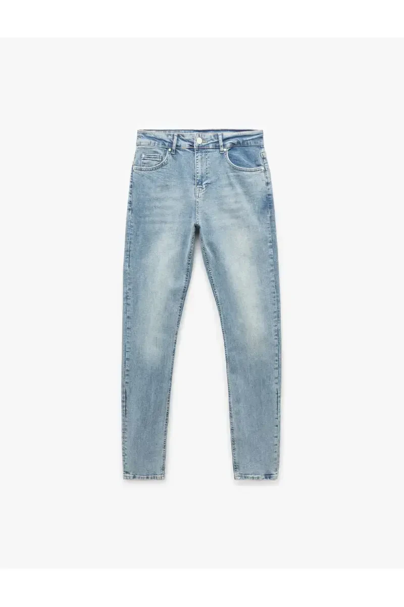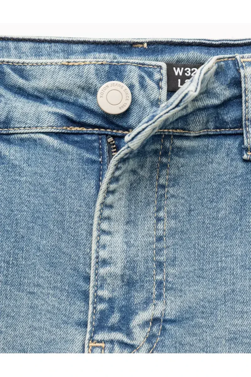 Pedro Slim Fit tor tipidagi oddiy bel balandligi tor paça jinsi shimlari Mint moviy