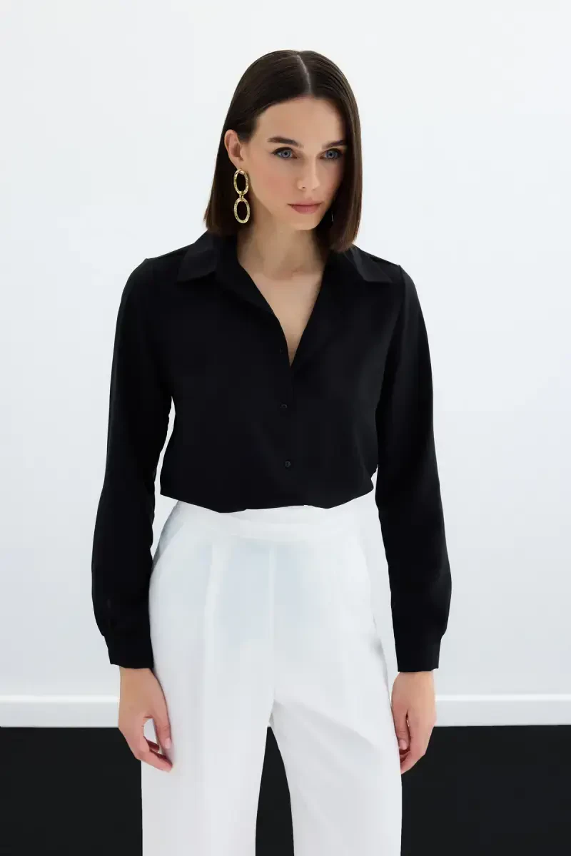 Qora rangi bilan Oddiy Klassik Ko'ylak har qanday kombinatsiyaga mos keladi, jinsi shimlar bilan kundalik ko'rinish, kostyumlar bilan esa rasmiy o'ziga xoslik yaratadi. Yuqori sifatli matodan tikilganligi sababli u uzoq vaqt xizmat qiladi va har bir yuvishdan keyin yangi ko'rinishga ega bo'ladi.