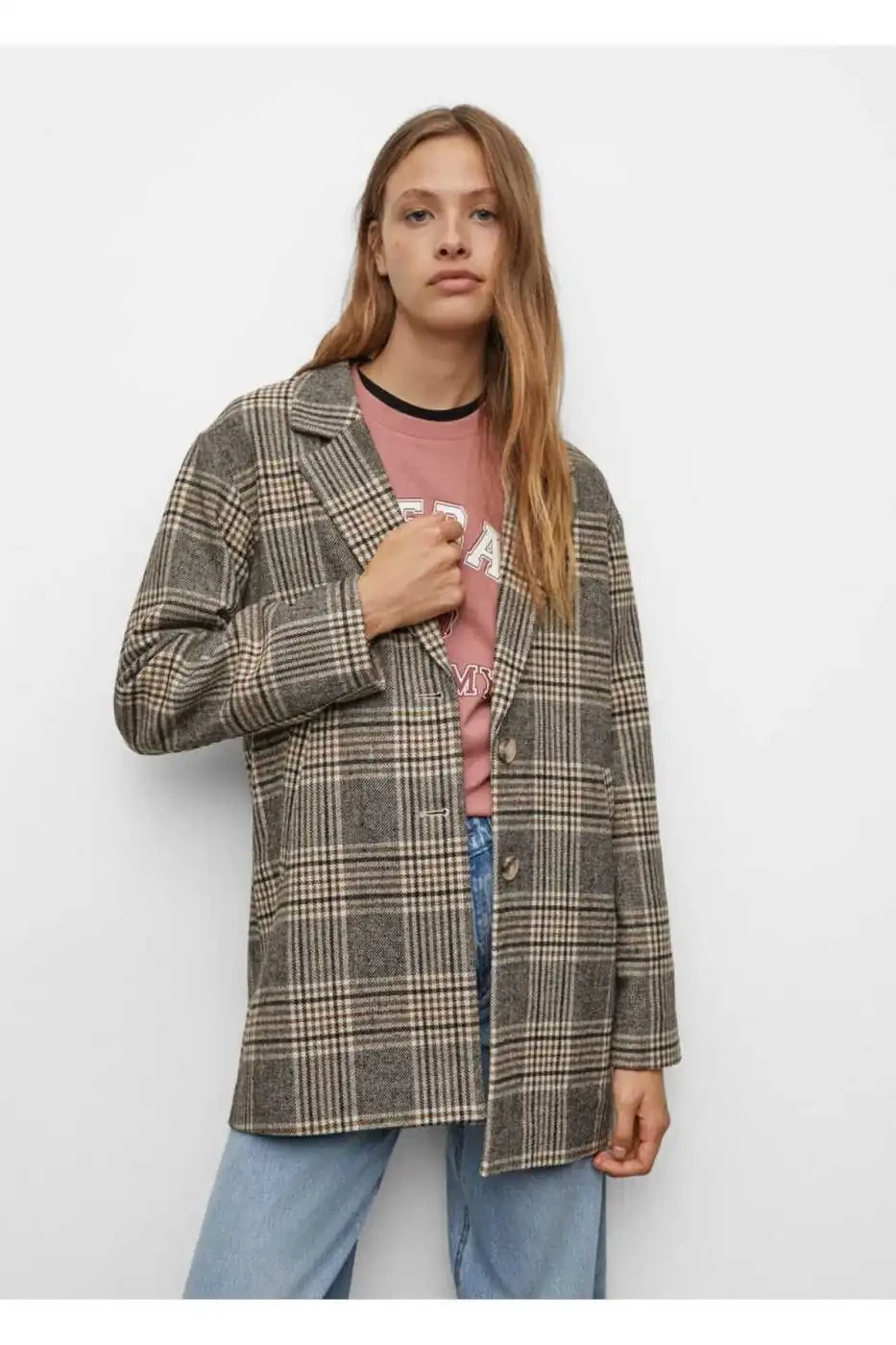 пальто, прямой крой, шеврон, на подкладке, длинный рукав, Trendyol