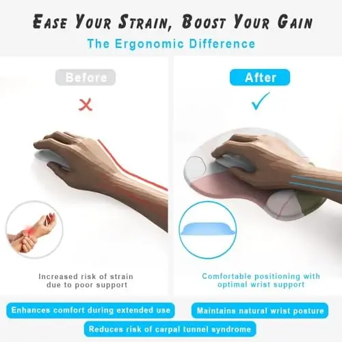 ✔ ♛ Optimized Ergonomic Comfort ♛ ➤ Elevate your desk experience with our precisely engineered mouse pad, featuring a gel-filled wrist rest sculpted to cradle your wrist in an - [ anatomically favorable position ] -. This thoughtful design - [ reduces wrist strain ] - and enhances comfort, - [ mitigating the risk ] - of - [ repetitive strain injuries ] - like - [ carpal tunnel syndrome ] - during extended use. ✔ ♛ Seamless Movement Experience ♛ ➤ Glide effortlessly with our mouse pad surfaced in - [ premium Lycra ] - , celebrated for its - [ incredibly smooth texture ] -. This choice material ensures that every mouse movement is - [ seamless and precise ] -, - [ enhancing workplace productivity ] ✔ ♛ Unyielding Grip Stability ♛ ➤ Securely designed with a - [ robust] -, - non-slip base] -, this mouse pad remains staunchly in place, offering a - [ steadfast platform] - that - [ resists shifts and slides] - under the most vigorous mouse movements. Ensuring - [ uninterrupted operation ] - and reliability. ✔ ♛ Superior Quality and Safety ♛ ➤ Our mouse pad is meticulously crafted from - [ advanced ] -, - [ eco-friendly materials ] - that are durable and - [ free from harsh chemical odors ] -, - [ promoting a healthy ] -, - [ sustainable workspace ] -. It’s - [ designed to endure ] -, resisting common wear and tear such as surface wear or base detacModazoneent. ✔ ♛ Buy Risk Free ♛ ➤ Encounter any issues with compatibility, gel leaks, or wrist support dissatisfaction? Contact us for a - [ Money Back ] - and - [ FREE REPLACEMENT ] -(no return required). Enjoy an 18-month - [ 100% satisfaction MONEY-BACK guarant ]