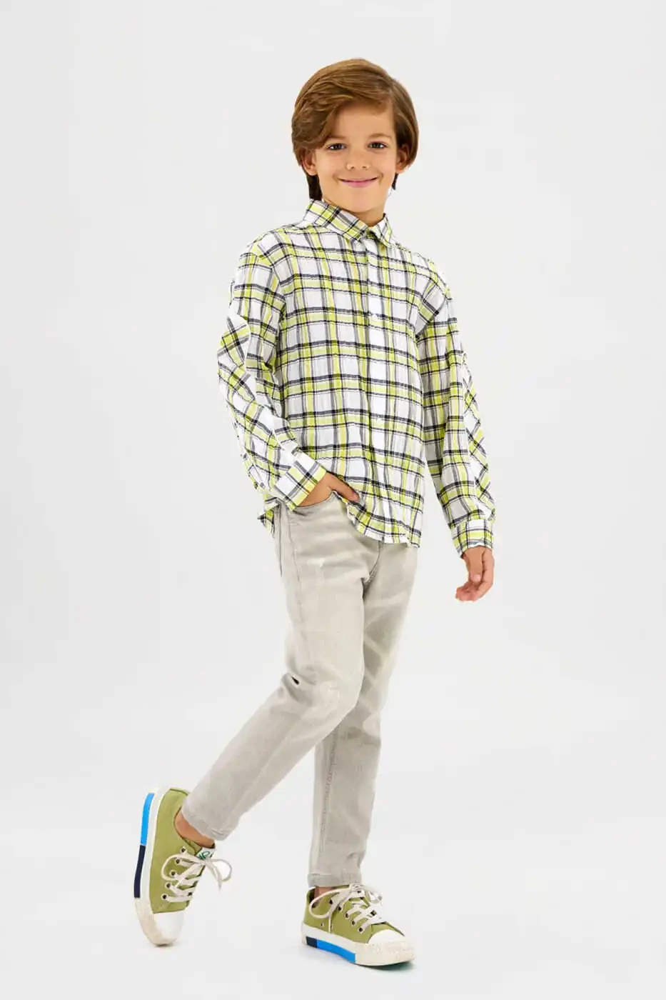 Agar siz o‘g‘il bolalarning shijoatli dunyosiga mos keladigan, zamonaviy va qulay kiyim qidirayotgan bo‘lsangiz, Yuvilgan Kulrang Jinsoz Shimlari to‘plamimizning eng mashhur mahsulotlaridan biri aynan siz uchun. Ushbu shimlar zamonaviy yuvish texnikasi yordamida olingan, o‘ziga xos va jozibali kulrang rang tusiga ega bo‘lib, farzandingiz garderobiga nafislik bag‘ishlaydi. Rangi va teksturasi bo‘yicha klassik jinsi ko‘rinishidan ajralib, yanada zamonaviy estetikani taqdim etadi. Ishlab chiqarishda ishlatilgan yuqori paxta miqdori shimlarning teriga nafas olishini ta’minlaydi va kun davomida maksimal qulaylik beradi. Bolalarning nozik terisini hisobga olgan holda tanlangan mato allergiya xavfini kamaytiradi. Shu bilan birga, matodagi elastiklikni ta’minlovchi tolalar tufayli farzandingizning harakat erkinligi cheklanmaydi; u yugurayotganda, sakrayotganda, o‘tirganda yoki o‘yin o‘ynayotganda o‘zini qulay his qiladi. Bu shimlarning eng muhim xususiyatlaridan biri uning mustahkamligidir. Bolalarning faol turmush tarziga mos keladigan tarzda ishlab chiqilgan mustahkam tikuvlari va yemirilishga chidamli matosi eng qiyin sarguzashtlarda ham o‘z shaklini saqlab qoladi va uzoq muddatli foydalanish imkonini beradi. Tizza va oyoq uchlari kabi tez eskiradigan qismlar qo‘shimcha mustahkamlangan tuzilishi bilan ajralib turadi. Yuvilgan effekt shimga o‘ziga xos va "cool" havo bag‘ishlaydi, har yuvishda o‘z xususiyatini saqlab qoladi va vaqt o‘tishi bilan yanada chiroyli bo‘ladi. Maktabda, parkda, do‘stlar bilan uchrashuvlarda yoki oilaviy sayohatlarda; bu kulrang jinsi shimlar har qanday muhitga oson moslasha oladi. Ustiga rangli futbolkalar, sport sviterlari yoki nafis ko‘ylaklar bilan turli xil va zamonaviy kombinatsiyalar yaratish mumkin. Klassik 5 cho‘ntak detali shimlarning estetik ko‘rinishini to‘ldirishi bilan birga, bolalarning kichik xazinalarini yoki qo‘llarini solishlari uchun amaliy joy beradi. Bel qismidagi sozlanishi mumkin bo‘lgan rezinka yoki ichki sozlash tugmalari tufayli farzandingiz o‘sib ulg‘aygan sayin shimlardan foydalanishni davom ettirishi mumkin, bu esa mahsulotning foydalanish muddatini uzaytiradi va byudjetga mos yechim taklif qiladi. Fermuar va tugma orqali yopish tizimi bolalar uchun qulay va xavfsizdir. Sifatli fermuar mexanizmi tiqilib qolmaydi, tugma esa mahkam o‘rnatilgan. Mahsulotimiz bolalar salomatligiga zararli kimyoviy moddalar saqlamaydigan, xalqaro standartlarga mos keladigan materiallardan ishlab chiqarilgan. Shu sababli ota-onalar farzandlari uchun bemalol tanlashlari mumkin. Poycha kengligi sport poyafzallari bilan ham, klassik botinkalar yoki oddiy poyafzallar bilan ham qulay foydalanish mumkin bo‘lgan muvozanatli kesimga ega. Bu shimlar shunchaki kiyim emas, balki farzandingizning o‘ziga bo‘lgan ishonchini oshiradigan, unga o‘zini yaxshi his qilishiga yordam beradigan qismdir. Zamonaviy kulrang rang modadan osongina chiqmaydigan rang bo‘lib, har doim o‘z mashhurligini saqlab qoladi. Oson parvarishi tufayli ota-onalarning hayotini yengillashtiradi; mashinada yuvish mumkin va o‘z shaklini saqlaydi. O‘g‘il farzandingiz garderobiga uslub, qulaylik va mustahkamlikni birgalikda taqdim etuvchi bu yuvilgan kulrang jinsi shimlarni qo‘shib, uning kundalik sarguzashtlariga hamroh bo‘ladigan mukammal tanlovni amalga oshirgan bo‘lasiz. Mahsulotimizning har bir detali bolalarning ehtiyojlari va ota-onalarning kutishlari hisobga olingan holda sinchkovlik bilan ishlab chiqilgan. Bu shimlar bilan farzandingiz ham qulaylik, ham ko‘rkamlikdan bahramand bo‘ladi.