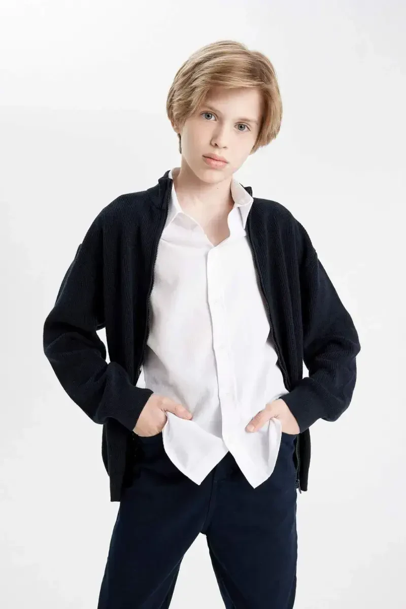 Uslub va qulaylikni birlashtirgan O'g'il bolalar uchun ko'k yarim balıqchi yoqali trikotaj maktab kardigani, farzandingizning maktab kunlarida ham zamonaviy, ham qulay bo'lishini ta'minlaydi. Yumshoq va sifatli trikotaj matodan tikilgan kardigan, farzandingizning terisiga yumshoq teginishni taqdim etadi, yarim balıqchi yoqasi esa zamonaviy ko'rinishni to'ldiradi.
