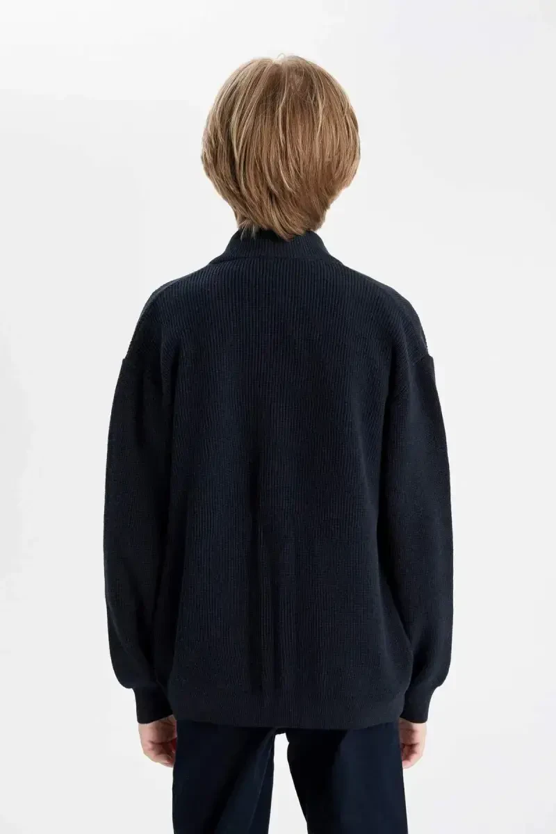 O'g'il bolalar uchun ko'k yarim balıqchi yoqali trikotaj maktab kardigani, farzandingizning maktab kunlarida zamonaviy va qulay bo'lishini ta'minlaydigan ajoyib tanlovdir. Sifatli materiallari va zamonaviy dizayni bilan u ko'p yillar davomida foydalanish mumkin.