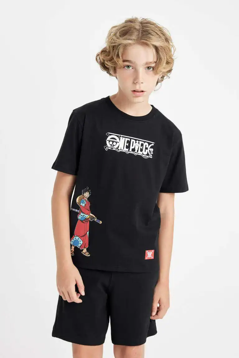 bolalar uchun futbolka, velosiped yoqasi futbolka, qisqa yengli futbolka, qora futbolka, one piece futbolka, bolalar kiyimlari, o'g'il bolalar kiyimlari