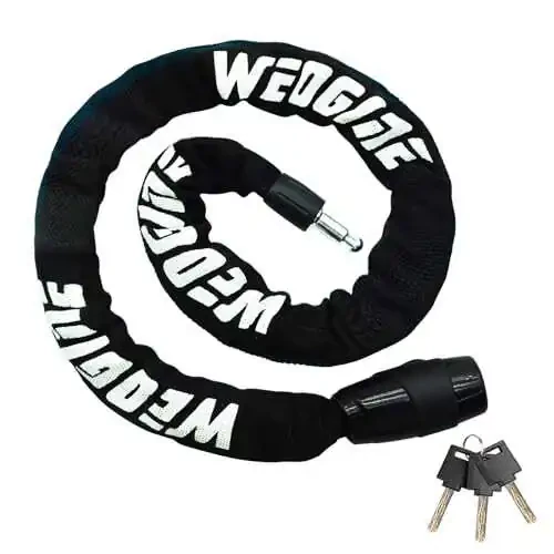 Bizning velosiped zanjiri qulfimiz 82 sm uzunlikda bo'lib, bu velosipedingiz, skuterlaringiz yoki mototsikllaringizni mahkamlash uchun idealdir. Shuningdek, u eshiklarni, darvozalarni yoki panjaralarni xavfsiz tarzda qulflash uchun ham ishlatilishi mumkin. O'rnatish va ishlatish oson, shunchaki zanjirning bir uchini biror narsaga, ikkinchi uchini esa qulfga ulang va qulflang. Ishonchli tarzda o'rnatilayotganligiga ishonch hosil qilish uchun, qulfni zanjir halqalariga ulashda zanjir halqalari to'liq qulf silindrining ichiga kirganligiga ishonch hosil qiling.