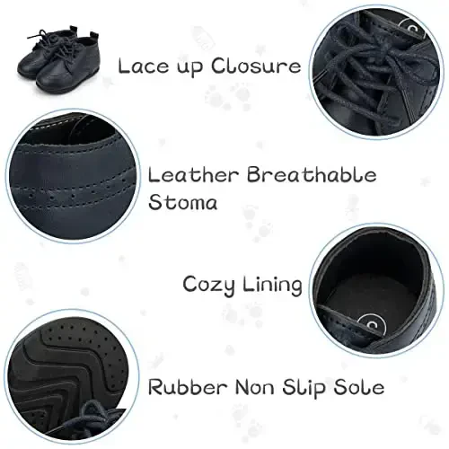 Soft and comfortable PU leather material. Non-slip soft rubber sole for comfortable feet. Easy to put on and take off with adjustable hook and loop closure. Enough space for your baby's feet to grow. Classic oxford style design makes them easy to match with many outfits. Perfect for weddings, birthday parties, and everyday use.