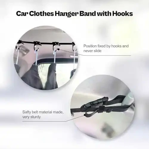 **OJYDOIIIY Car Clothes Hanger Bar Strap with Hanging Hooks, Easy-to-Store Car Clothes Organizer Rack for Auto,Sedan,Van,SUV,Truck,Jeep**The OJYDOIIIY Car Clothes Hanger Bar Strap is a versatile car accessory that helps you keep clothes, bags, ties, and more organized and within reach in your vehicle. Featuring 7 hang-able hooks, this hanger bar is perfect for travel and fits easily into any car.Designed with durability and safety in mind, the hanger bar is constructed from heavy-duty safety-belt level material. This makes it resistant to bumps and jolts, ensuring it won't collapse or bounce out even on rough roads.**Features:*** 7 hanging hooks* Suitable for clothes, bags, ties, etc.* Ideal for travel* Non-slip or sliding* Heavy-duty safety belt level material* Fits all types of vehiclesKeep your car organized and functional with the OJYDOIIIY Car Clothes Hanger Bar Strap and enjoy the convenience of having your essentials within reach on long road trips.