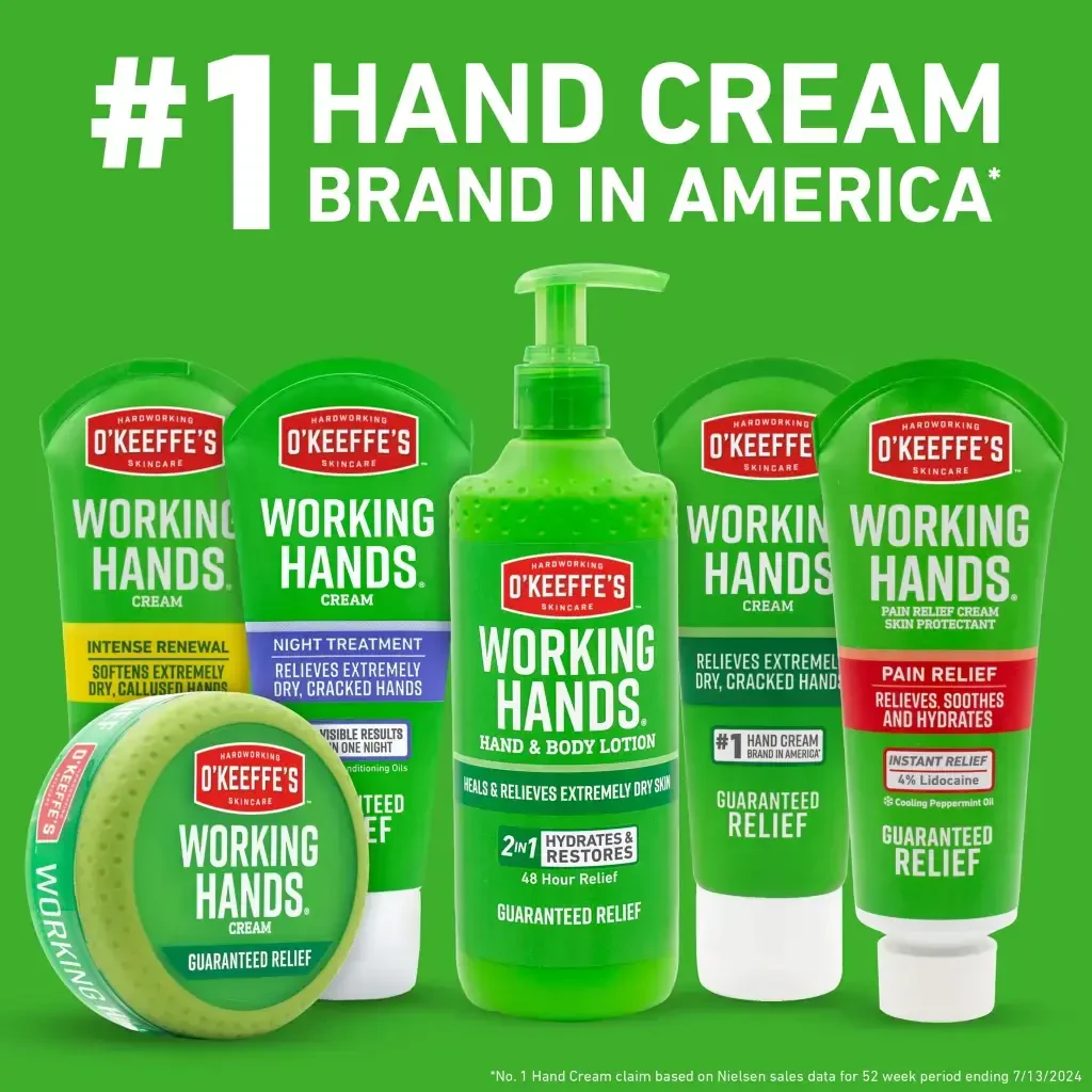 Крем для рук O'Keeffe's Working Hands - это концентрированный крем для рук, который лечит, снимает и восстанавливает очень сухие, потрескавшиеся руки. При ежедневном использовании клинически доказано, что этот крем для рук мгновенно повышает уровень влаги, помогает предотвратить дальнейшую потерю влаги, создает защитный барьер на поверхности кожи и дает результаты, которые вы почувствуете в течение нескольких дней. В этой упаковке содержится 3 унции крема для рук.