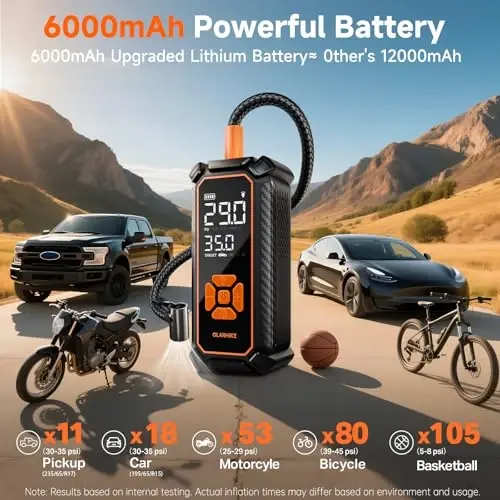 OlarHike simsiz shinalarni puflash moslamasi bilan shinalarni puflash endi ancha oson va tezroq! Ushbu ko'chma havo kompressori kuchli ishlashi va ko'p qirrali xususiyatlari bilan ajralib turadi. Xoh avtomobilingiz, xoh mototsiklingiz, xoh velosipedingiz shinalarini puflang, OlarHike har doim siz bilan birga. 150 PSI maksimal bosimi bilan u turli xil transport vositalari va sport anjomlari uchun ideal echimdir. Ikkilamchi quvvat manbai xususiyati tufayli siz uni ham simsiz ichki batareyasi bilan ishlatishingiz, ham 12V DC avtomobil chiroqiga ulab doimiy quvvat bilan ta'minlashingiz mumkin. 6000mAh yuqori sig'imli batareya bir zaryadda bir nechta shinalarni puflash imkonini beradi, shu bilan birga USB chiqishi tufayli telefoningizni yoki boshqa qurilmalaringizni ham zaryadlashingiz mumkin.OlarHike shinalarni puflash pompasi foydalanuvchilar uchun qulay dizayni bilan ham ajralib turadi. Ultra keng ekran va yuqori aniqlikdagi bosim sensori tufayli siz shinalar bosimini real vaqtda kuzatishingiz mumkin. Avtomatik o'chirish xususiyati siz oldindan o'rnatgan bosimga erishilganda puflashni avtomatik ravishda to'xtatib, haddan tashqari puflashni oldini oladi va xavfsizligingizni ta'minlaydi. Bundan tashqari, to'rtta xil oldindan o'rnatilgan rejim (avtomobil, velosiped, mototsikl, sport anjomlari) tufayli siz bir tegish bilan to'g'ri bosimni o'rnatishingiz mumkin. Qurilma oxirgi ishlatilgan sozlamani xotirasida saqlab, keyingi foydalanishni yanada osonlashtiradi.Kompakt va ko'chma dizayni tufayli siz OlarHike'ni hamma joyda o'zingiz bilan olib yurishingiz mumkin. Yengil tuzilishi va sumkasi bilan siz uni avtomobilingizning yukxonasida, ryukzagingizda yoki velosiped tokchangizda osongina saqlashingiz mumkin. O'rnatilgan LED fonari tunda yoki qorong'i muhitda shinalarni puflash operatsiyalarini osonlashtiradi, shu bilan birga yo'l chetidagi favqulodda vaziyatlarda ham yordam beradi. OlarHike simsiz shinalarni puflash moslamasi shunchaki shinalarni puflash pompasi emas, balki xavfsizlik vositasidir. Uzoq safarlaringizda yoki kundalik foydalanishda sizga ishonch va qulaylik beradi. OlarHike bilan shinalaringizni bexavotir puflang va sayohatlaringizdan zavqlaning!