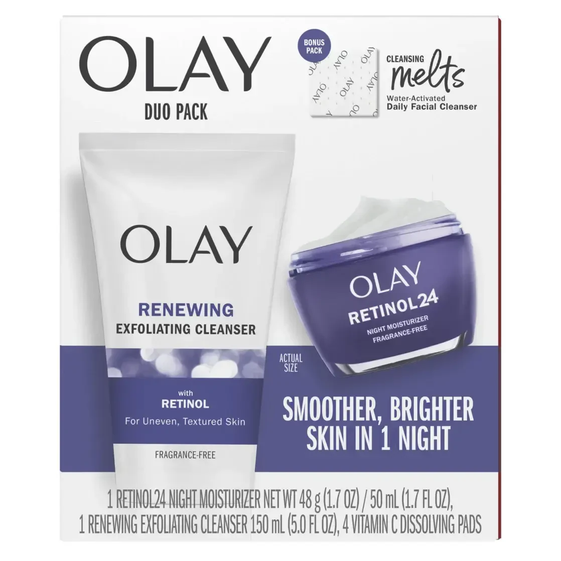 Olay Skin Care Beauty Retinol Duo Pack, Увлажняющий крем и очищающее средство для лица, Сглаживающий и омолаживающий, 1,7 унции