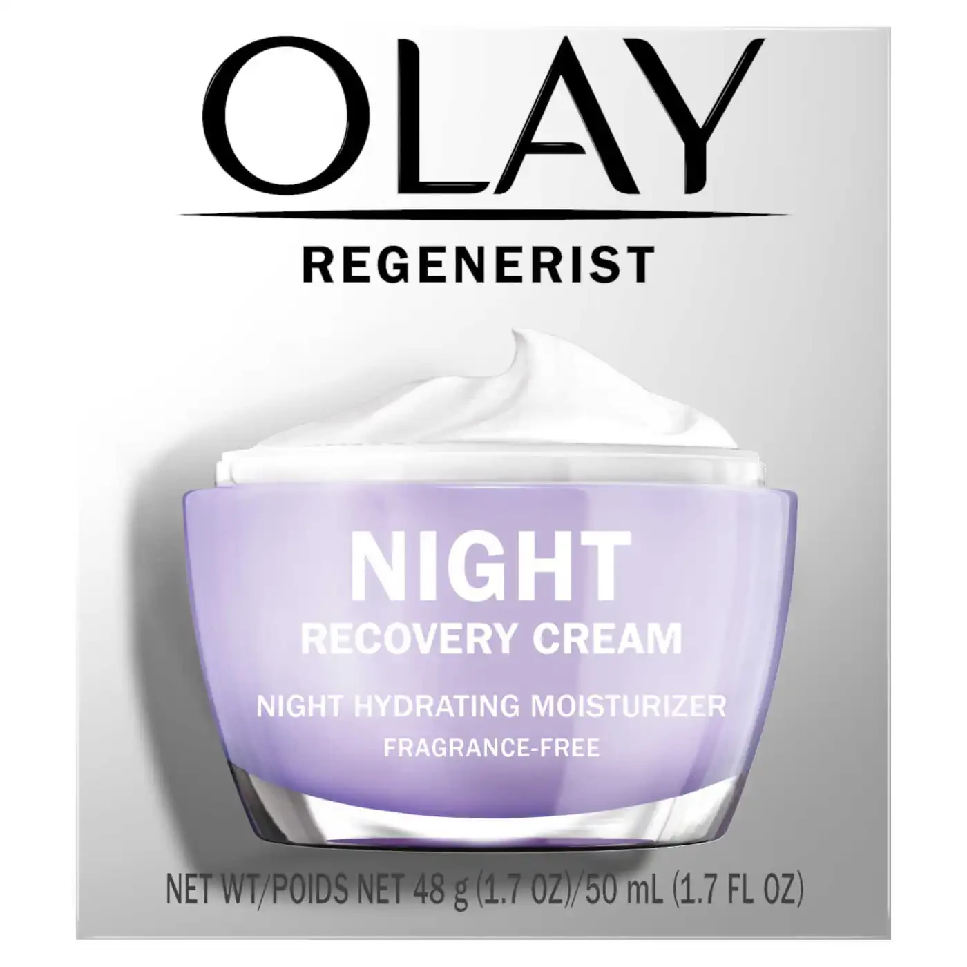 Wake up to intensely moisturized and younger-looking skin with Olay Regenerist Night Recovery Cream, a night cream face moisturizer within Olay's Advanced Anti-Aging Skin Care Collection. Its intense moisture hydrates throughout the night to reduce the appearance of fine lines and wrinkles. This night moisturizer has a super-hydrating formula with Amino-Peptide Complex, penetrates 10 layers deep to regenerate surface skin cells. Packed with hydration power, it plumps skin with a rich, velvety feel and exfoliates to aid surface cell turnover. The anti-aging moisturizer's fragrance-free formula is non-greasy and absorbs quickly into the surface of the skin. No fragrance, phthaltes, mineral oil or synthetic dyes.