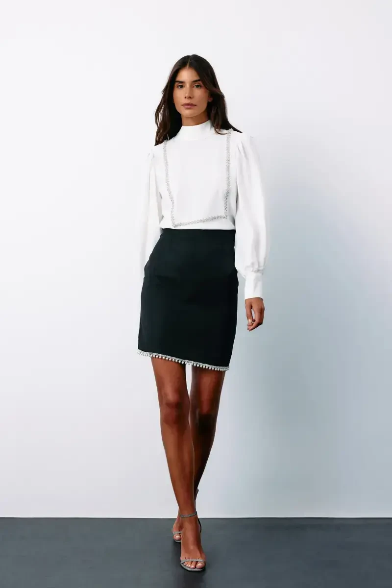 Oldingi Toshlar bilan bezatilgan Bluzka - EKRU | Nafis va Chiroyli