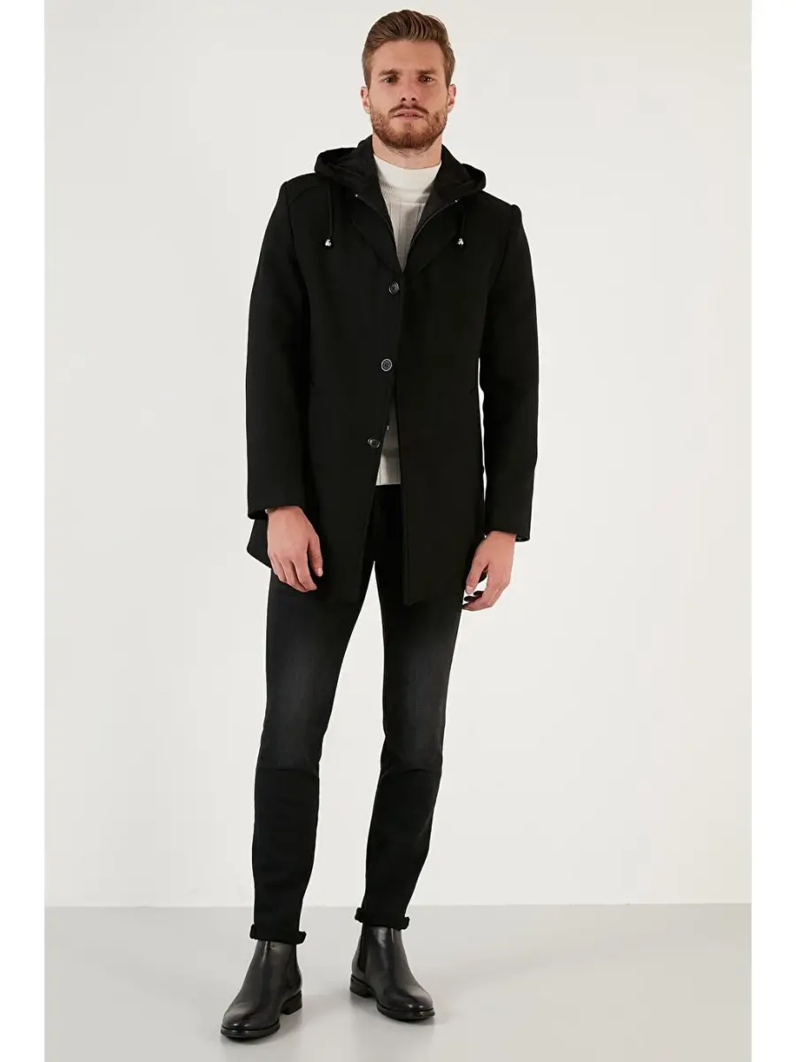Kaşmir пальто, slim-fit пальто, qirrali пальто, kaptşонли пальто, эркак пальто, qora пальто, қишлик пальто, замонавий пальто, chiroyli пальто, ечиладиган капюшон
