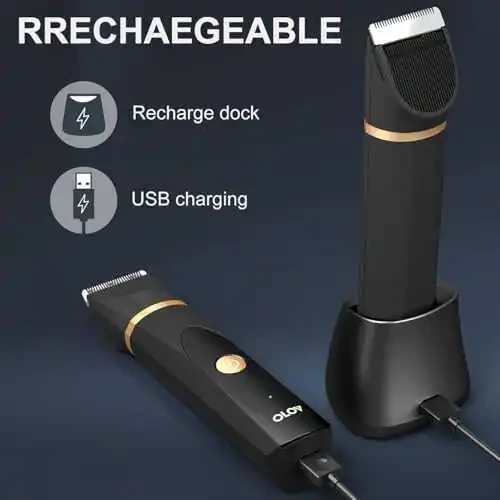 OLOV Электрическая триммер для волос на теле - триммер для паха для мужчин - триммер для бикини для женщин - бритва для влажного/сухого бритья, сменные керамические лезвия, зарядная док-станция USB, водонепроницаемая бритва для гигиены, черная
