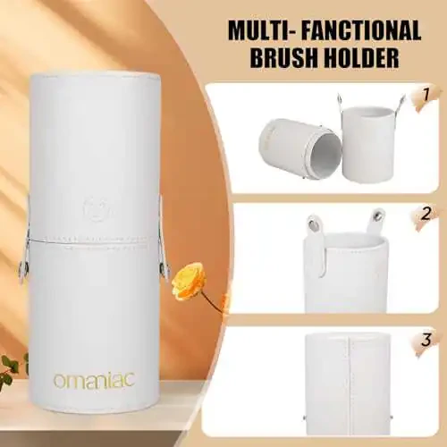 **Ko'p funksiyali pardoz cho'tkalari ushlagichi bilan keladi:** Pardoz cho'tkalari ushlagichi toza PU charmidan ishlangan, 2 ta stakan bir-biriga mahkamlanadi, cho'tkalarning tik turishiga imkon beruvchi noyob dizayn, pardoz cho'tkalarini qopqoq ichiga yaxshilab joylashtirish orqali tashqi changni samarali ravishda to'sib qo'yadi va sayohatga olib chiqish uchun ham juda mos keladi.