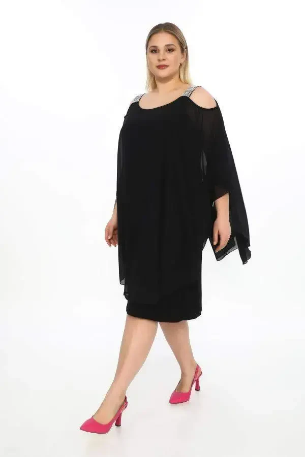 The Shoulder Stone Detailed Chiffon Plus Size Black Dress will make you feel like a princess on your special days. Offering both comfort and elegance, this dress will give you unforgettable moments. Don't forget to check the washing instructions on the label. Do not hesitate to contact us for any questions or requests. We will be happy to help you choose the most suitable size for you. Happy shopping!