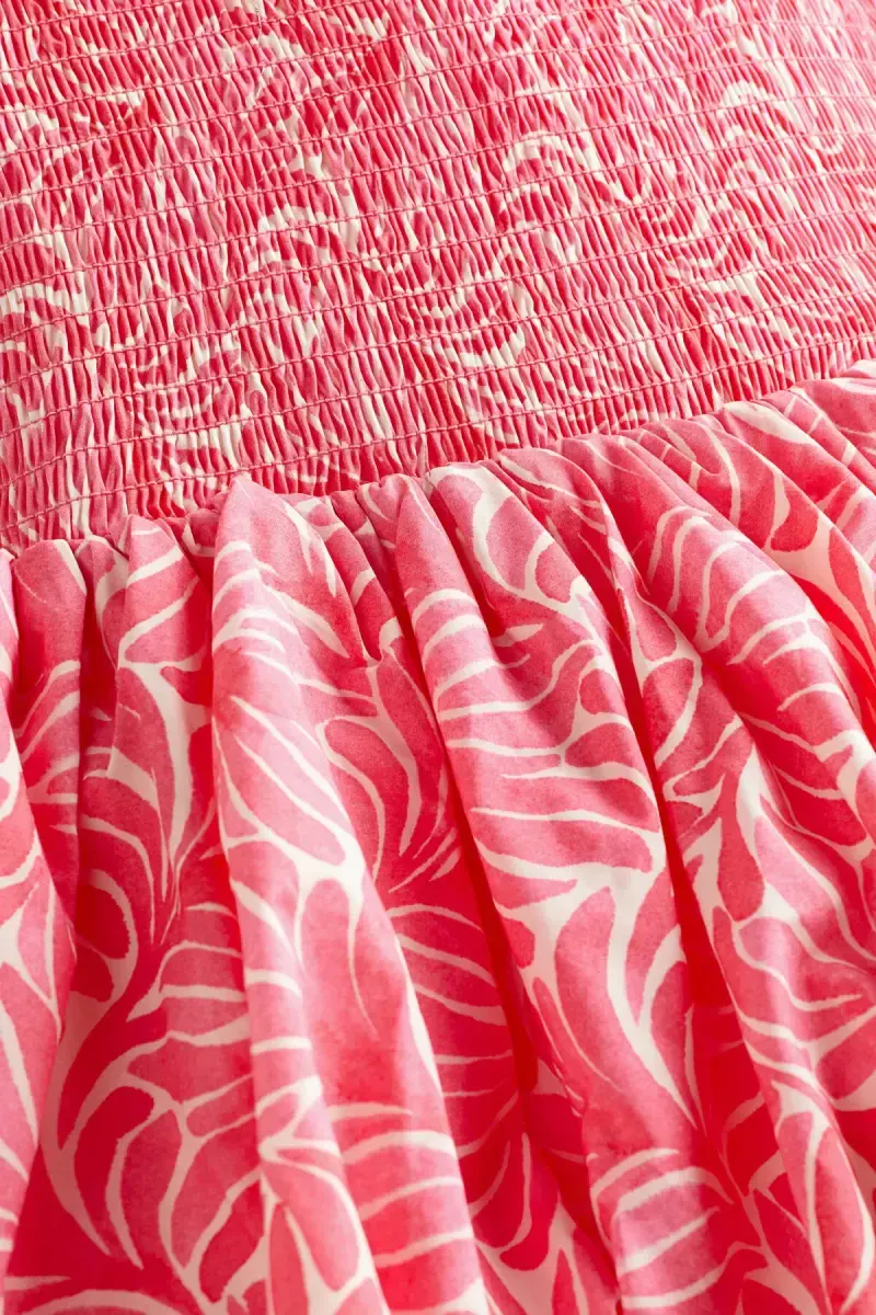 Omuzları açık elbise, büzgülü elbise, pembe elbise, desenli elbise, H&M elbise, yazlık elbise, Trendyol elbise, kadın elbise, şık elbise, günlük elbise