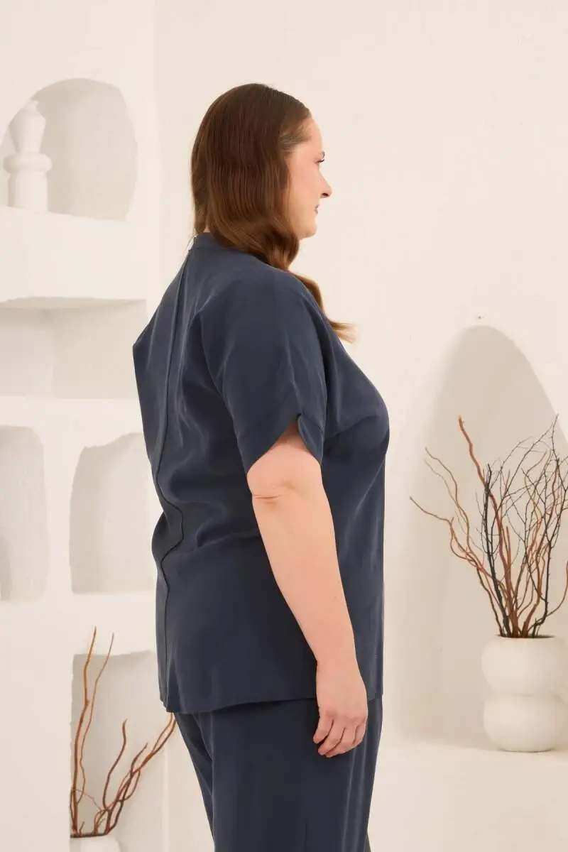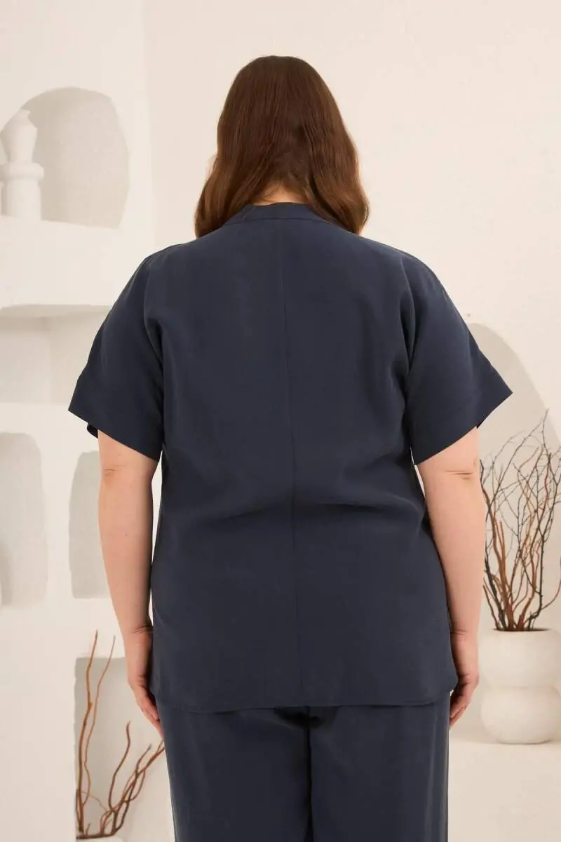 Ön Düğmeli Büyük Beden Modal Bluz Lacivert