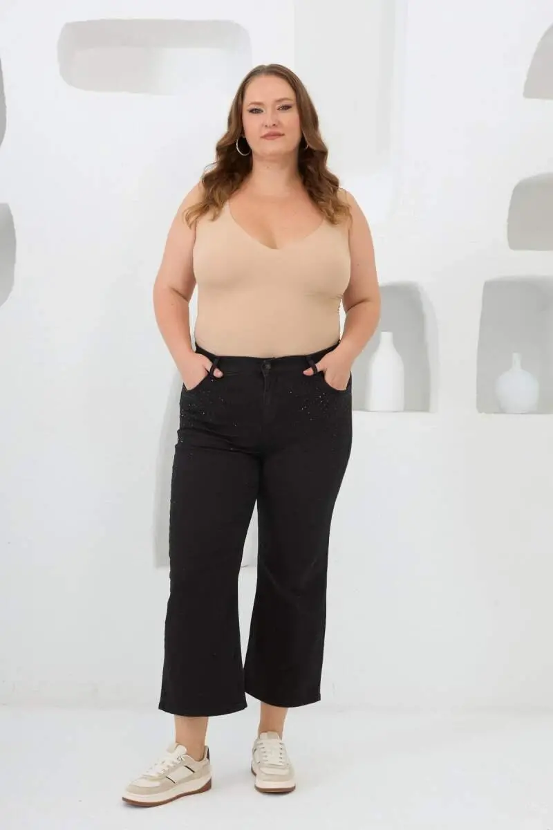 Gardırobunuzun vazgeçilmezi olacak Ön Taş Detaylı Büyük Beden Kot Pantolon Siyah ile tanışın! Hem şıklığı hem de rahatlığı bir arada sunan bu denim pantolon, büyük beden giyimde aradığınız konforu ve stilinizi yansıtma özgürlüğünü sunuyor. Modern tasarımı ve dikkat çekici taş detayları sayesinde her ortamda fark yaratmanızı sağlayacak. İster günlük kullanımda ister özel bir günde, bu pantolon ile kusursuz kombinler oluşturabilirsiniz. Siyahın asaleti ve taş detaylarının ışıltısı bir araya gelerek, her tarza uyum sağlayan bir görünüm ortaya çıkarıyor. Yüksek kaliteli denim kumaşı sayesinde uzun ömürlü bir kullanım sunarken, vücudunuza tam oturan kesimi ile de gün boyu rahat etmenizi sağlar. Büyük beden kadınların vücut hatlarını en iyi şekilde ortaya çıkaran bu pantolon, özgüveninizi artırarak kendinizi iyi hissetmenize yardımcı olur. Yaz aylarının vazgeçilmezi olacak bu pantolon, ferah ve şık kombinler için ideal bir seçimdir. Tişörtler, bluzlar, gömlekler ve hatta şık bir ceket ile kolayca kombinleyebilir, her zaman stil sahibi bir görünüm elde edebilirsiniz. Ön Taş Detaylı Büyük Beden Kot Pantolon Siyah, sadece bir pantolon değil, aynı zamanda tarzınızı ifade etme biçiminizdir. Kendi stilinizi yansıtmak ve her zaman şık olmak isteyen büyük beden kadınlar için tasarlanmış bu özel parça, gardırobunuzun en değerli parçalarından biri olacak. Üstelik, pamuk ve elastan karışımı kumaşı sayesinde gün boyu rahat hareket etme imkanı sunar. Esnek yapısı sayesinde vücudunuza uyum sağlar ve hareketlerinizi kısıtlamaz. Hem şık hem de rahat olmak isteyenler için ideal bir seçimdir. Bu pantolonu sadece yaz aylarında değil, her mevsim rahatlıkla kullanabilirsiniz. Soğuk havalarda botlar ve kalın bir kazak ile kombinleyerek sıcak ve şık bir görünüm elde edebilirsiniz. Ya da ilkbahar aylarında hafif bir ceket ve spor ayakkabılar ile kombinleyerek günlük şıklığınızı tamamlayabilirsiniz. Ön Taş Detaylı Büyük Beden Kot Pantolon Siyah, her mevsim ve her ortamda size eşlik edecek çok yönlü bir parçadır. Unutmayın, stil sadece kıyafetlerle değil, aynı zamanda kendinizi nasıl hissettiğinizle de ilgilidir. Bu pantolon, size kendinizi iyi hissettirecek ve özgüveninizi artıracak bir parçadır. Şıklığı ve rahatlığı bir arada sunan bu özel tasarım ile her zaman en iyi halinizle parlayın!