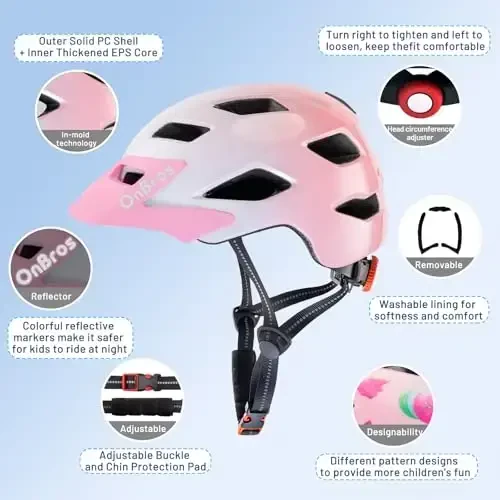 OnBros Kids Bike Helmet - bu 5-14 yoshdagi o'g'il va qiz bolalar uchun maxsus ishlab chiqilgan yuqori unumdor velosiped dubulg'asi. U tog 'velosipedida, skuterda yoki shosse velosipedida yuradimi, farzandingiz xavfsizligini maksimal darajada oshirish uchun ideal. Dubulg'a engil tuzilishi va sozlanishi xususiyatlari tufayli bolalar uchun qulay bo'lishi uchun mo'ljallangan. 50-57 sm bosh atrofiga ega bolalar uchun javob beradi. Dubulg'aning visorasi quyoshning zararli nurlaridan himoya qiladi, shuningdek shamol va changdan qo'shimcha himoya qiladi. OnBros Kids Bike Helmet - farzandingizning velosiped haydash tajribasini xavfsizroq va yoqimliroq qilish uchun ajoyib tanlov. Yuqori shamollatish tizimi tufayli uzoq muddatli foydalanishda ham terlashni kamaytiradi va qulaylikni oshiradi. Bardoshli materiallardan tayyorlangan bo'lib, zarbalarga yuqori qarshilik ko'rsatadi. Sozlanishi tasmalar va ichki plomba tufayli har bir bolaning boshiga mukammal mos keladi. OnBros Kids Bike Helmet bilan siz farzandingizning xavfsizligini birinchi o'ringa qo'ygan holda, ularga erkin harakat qilish imkoniyatini berasiz. Ushbu dubulg'a nafaqat xavfsizlik jihozi, balki farzandingizning velosiped haydash uslubini to'ldiradigan zamonaviy aksessuardir. Turli xil ranglar va naqshlar bilan u har qanday didga mos keladi. Farzandingizning xavfsizligi va qulayligi uchun OnBros Kids Bike Helmet-ni tanlang.