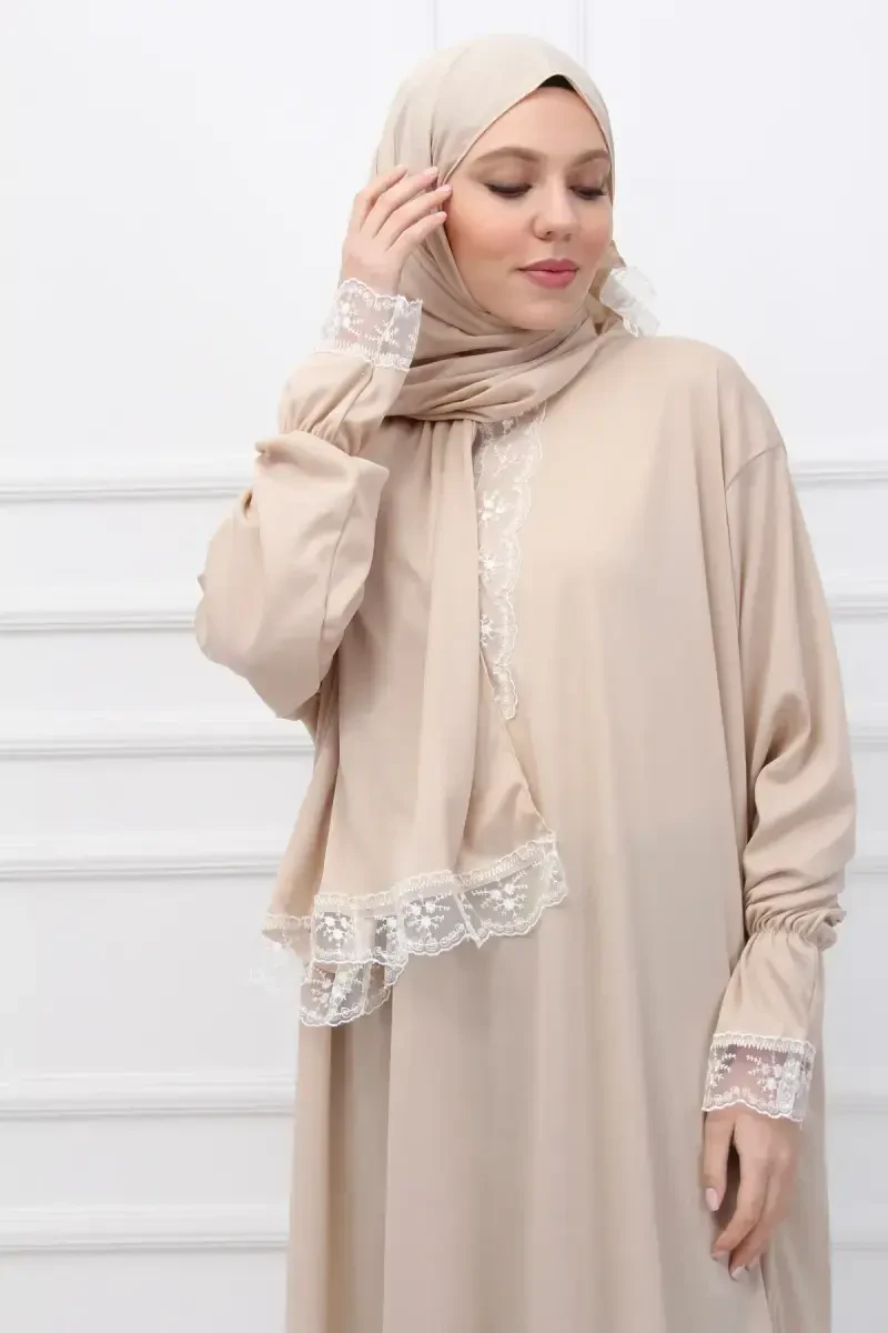Meet the One-Piece Self-Shawl Women's Prayer Dress that combines elegance and comfort in modest fashion! This special design, offered with DEFKA HOME WEAR quality, will help you maintain your elegance in both your worship and daily life. The soothing tone of cream color highlights the simple and elegant design of the dress, while the self-shawl feature offers practical use. The woven fabric structure provides a comfortable experience throughout the day, while the cotton material allows your skin to breathe. The plain weave type gives the dress a modern and stylish look, making it a piece that you can easily prefer in any environment. Thanks to its non-see-through structure, you can move with peace of mind, and it stands out with its compliance with modest clothing standards. The long-sleeved design adapts to seasonal conditions, while the relaxed fit offers a cut that does not wrap your body and allows you to move freely. Whether in daily use or on special occasions, this prayer dress will be an indispensable part of your wardrobe, offering both comfort and elegance. It can be easily cleaned according to Type 1 washing instructions, so you can ensure that your dress stays like the first day. With this popular piece of the modest clothing collection, you can achieve a modern and stylish look while performing your prayers in peace. With its self-shawl practicality and comfortable cut, this prayer dress will appeal to both young people and adults. Discover this special design now and add elegance to your style!