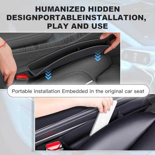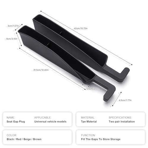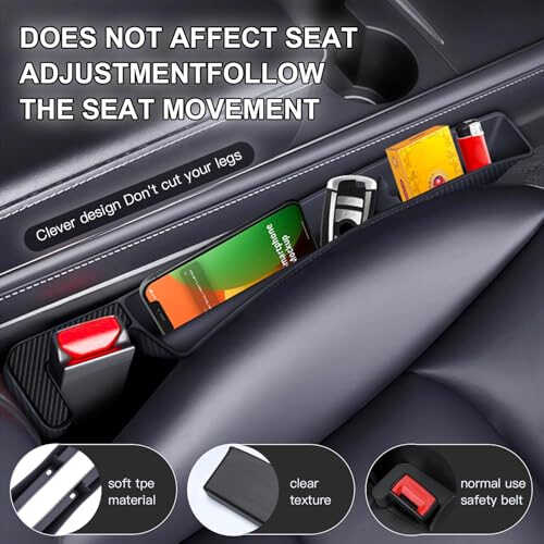 Multifunctional Design: This Car Seat Gap Filler Organizer features a multifunctional design that not only fills seat gaps but also includes a USB and Phone Holder, allowing you to charge and store your phone easily while driving. Universal Car Accessories: This car seat gap filler fits all types of vehicles, making it a perfect Universal Car Accessories Organizer. It effectively prevents items from falling between your seats and the center console. Extra Storage Spac: The car seat organizer between seats offers extra storage space for your phone, keys, and eyeglasses, keeping your car neat and your essentials within reach. Sturdy and Easy to Install: Made from high-quality materials, this car seat gap filler organizer is built to last. It’s easy to install without any tools, simply slide it into the seat gap and it's ready to use. Enhanced Driving Experience: With this gap filler for car, say goodbye to a cluttered car interior. It enhances your driving experience by making your ride more comfortable and organized, ensuring a safer journey.